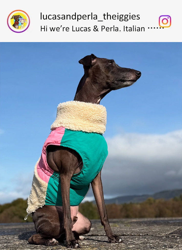 Dog Jacket Padding Coat with Hat Rainbow Stripe Italian Greyhound Clothes