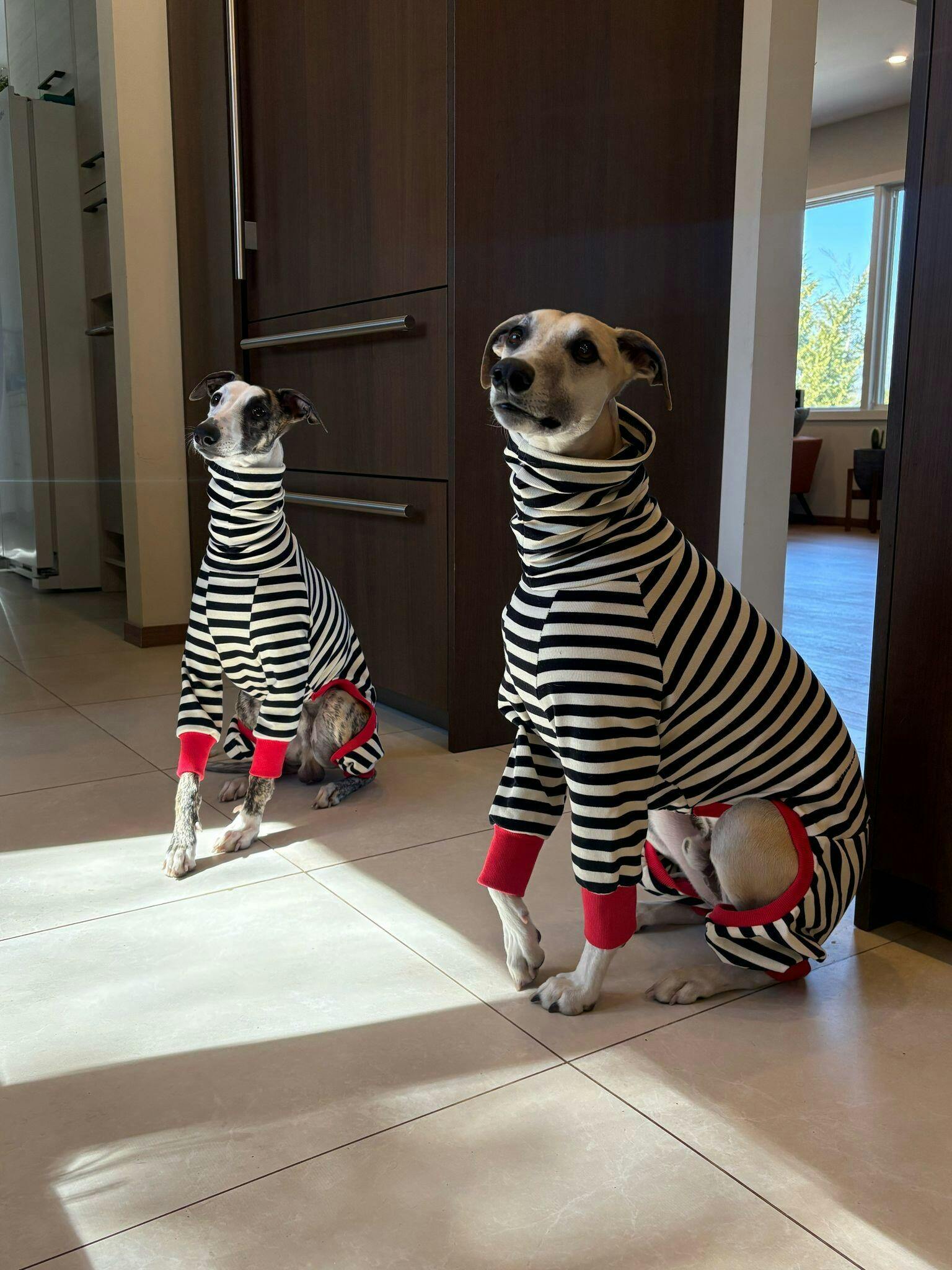 This stylish jumpsuit provides your Italian Greyhound or Whippet with year-round comfort. Crafted from pure cotton, it is soft to the touch and designed to fit their head and body shape. Keep your pup stylish this season.