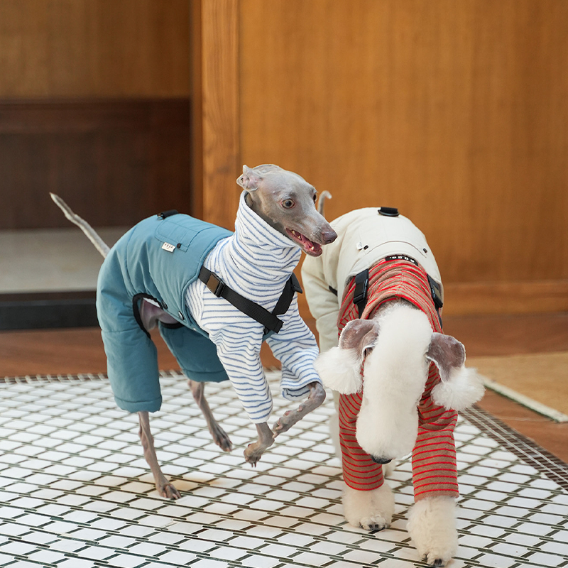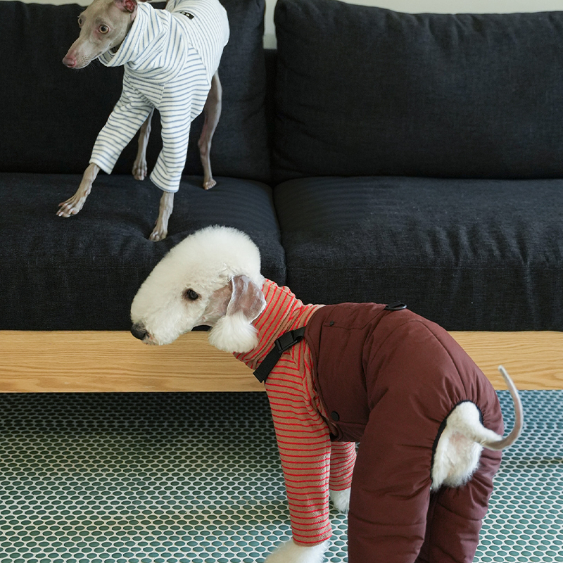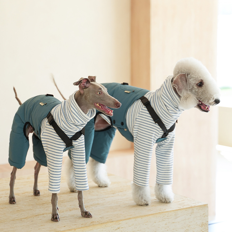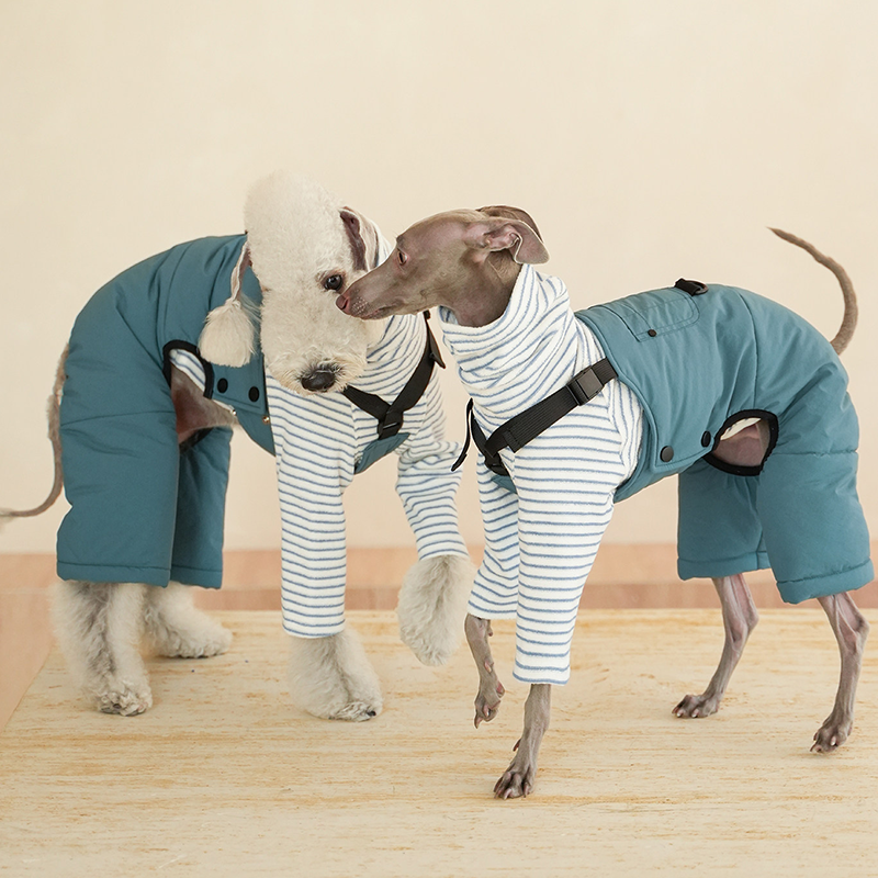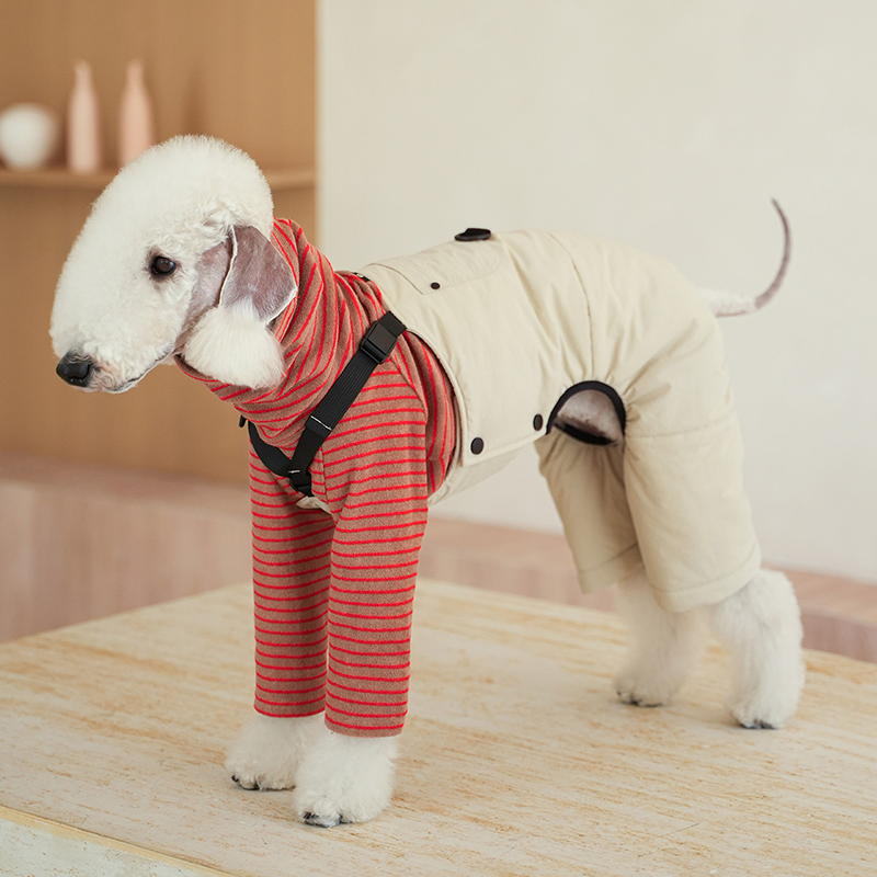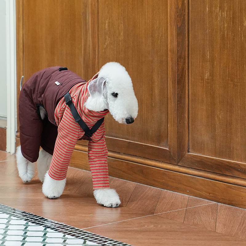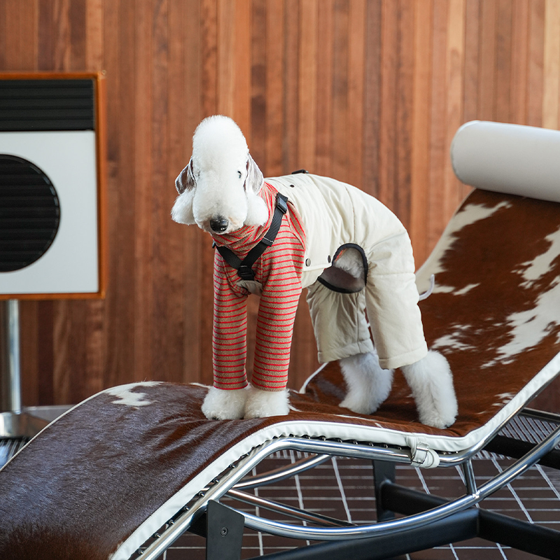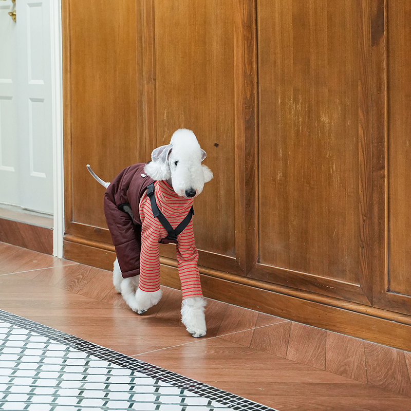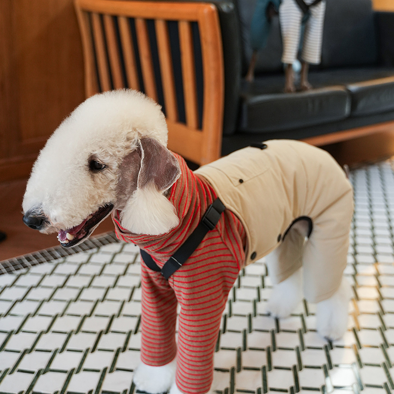 These thickened workwear cotton overalls onesies are designed for Bedlington dogs to stay warm and comfortable during autumn and winter. The durable fabric provides cozy insulation and protection, while the adjustable straps and loose fit allow easy movement for daily wear and outdoor play.