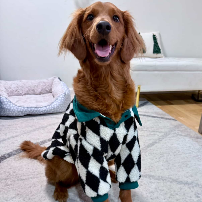 Keep your large pup cozy and stylish in the Large Dog Clothes Half Placket Dog Jacket. This jacket features a soft plush diamond quilt construction and a classic polo placket with buttons for an extra layer of warmth and durability during the chilly autumn and winter months.