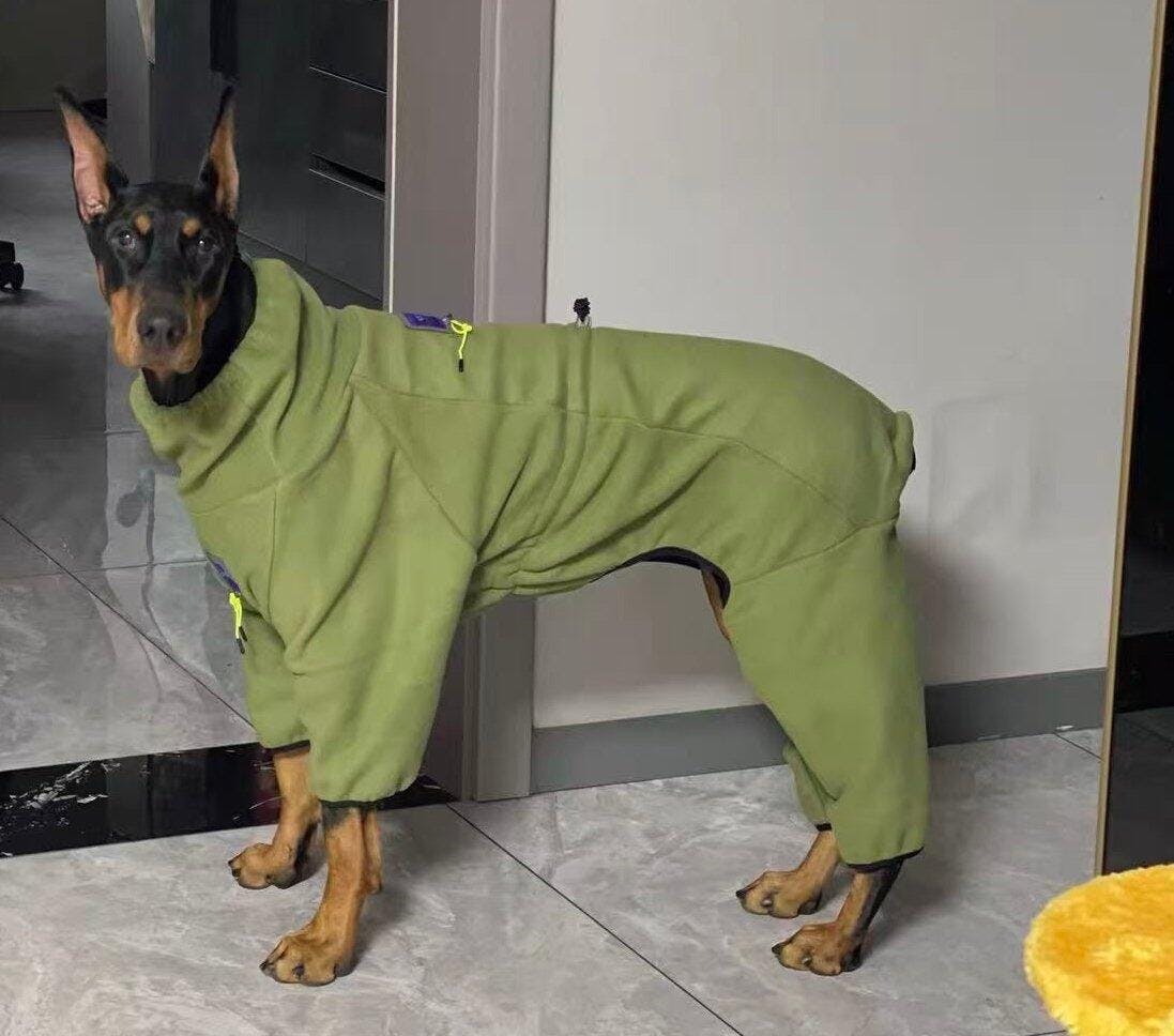 Perfect for pet parents searching for big dog onesies, large dog winter suits, or clothes for large dog breeds, this fleece onesie offers soft insulation, easy movement, and a snug fit for Labradors, Goldens, Huskies, German Shepherds, and other large breed pups.