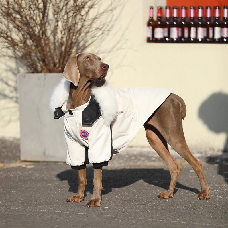 Keep your big dog warm and stylish with our Big Dog Jacket. This snowsuit features a detachable faux fur hat and a thick cotton lining for maximum warmth. Your furry friend will be the most fashionable pup around in this branded jacket.