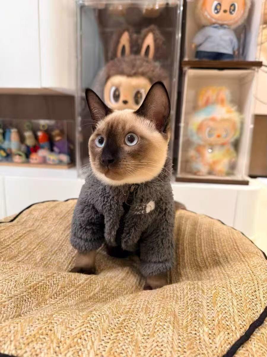 This Polar Fleece Zip Coat Winter Jacket is designed for sphynx cats. It's made with lamb wool fabric, so it’s warm and cosy in even the coldest weather. The zip-up design makes it easy to put on and take off. Available in four colors, it's perfect for keeping your sphynx cat warm and stylish.