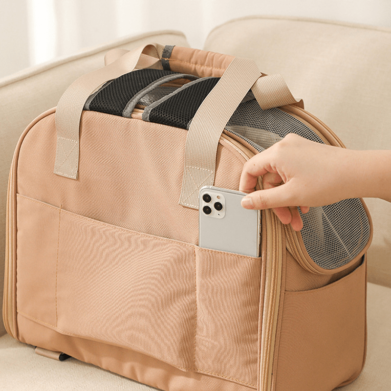 Crafted from high-density composite fabric, this pet carrier is built to withstand daily wear while remaining lightweight and comfortable. The exterior offers excellent durability, scratch resistance, and water repellence, making it ideal for outdoor use. The interior lining is soft and breathable, providing a cozy space for your dog during travel.