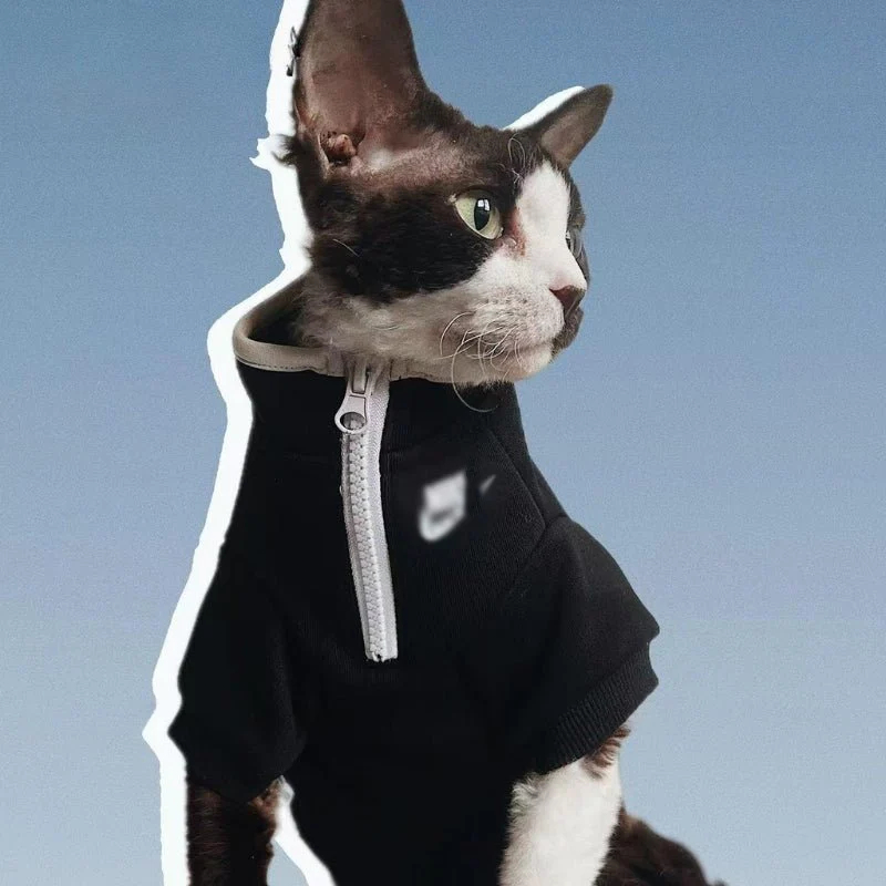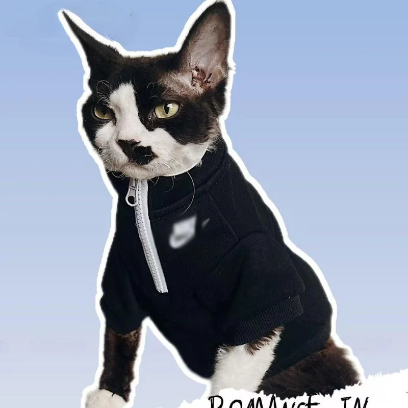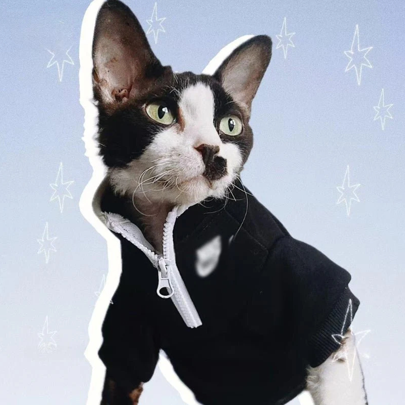 Handmade Cat Fleece Zip Jacket Coat Sphynx Clothes Sportswear