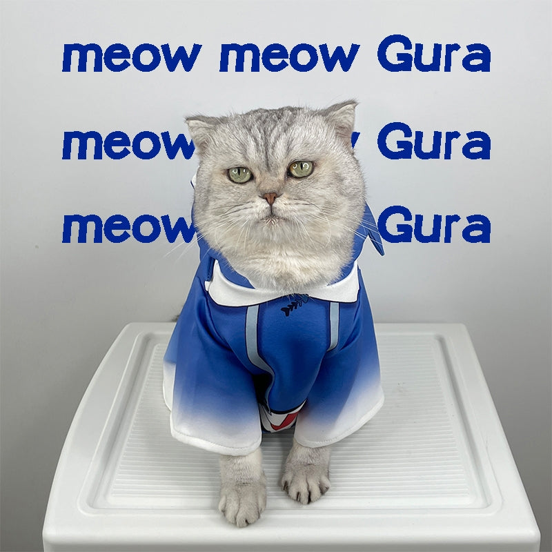 Transform your feline companion into the beloved Gawr Gura with this meticulously crafted shark girl pet costume. Featuring a detailed shark cloak design with authentic cosplay elements, this outfit captures the essence of the iconic character. The costume includes a comfortable shark hood and flowing cloak that drapes elegantly over your cat's body. Constructed from soft, pet-safe materials, it ensures your furry friend stays comfortable while looking absolutely adorable. Perfect for conventions, themed events, or simply delighting fellow anime enthusiasts. Whether your cat is a seasoned cosplay veteran or a first-time character enthusiast, this costume delivers professional-quality design with playful charm.
