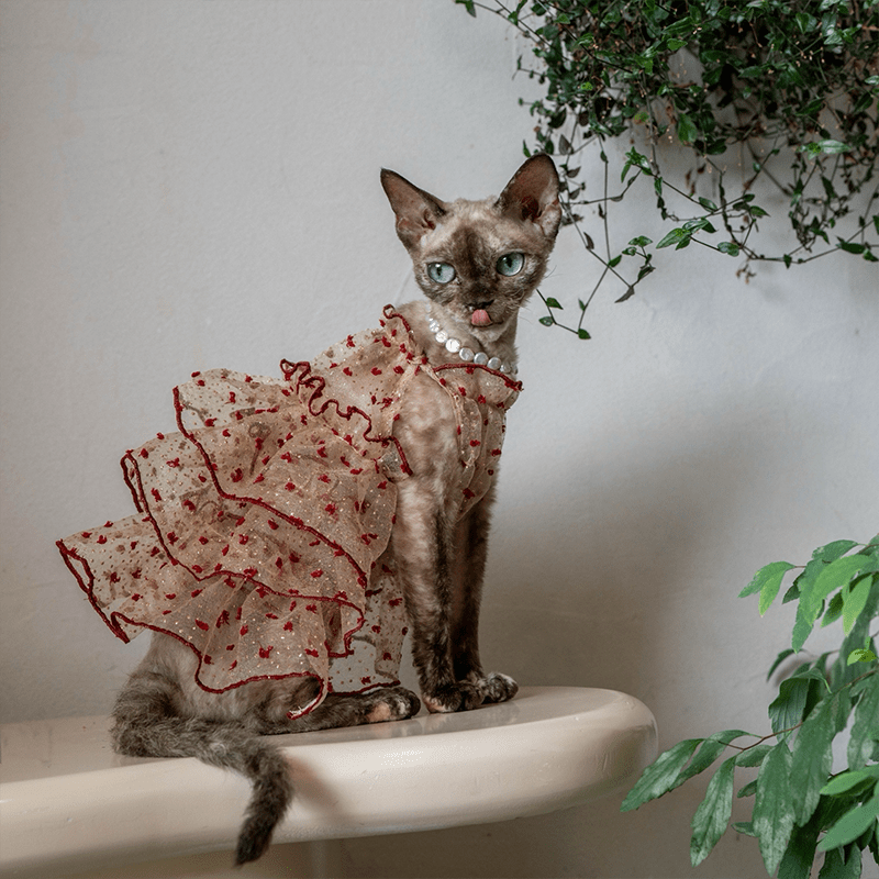 This sparkly sleeveless tulle dress is specially designed for Sphynx cats, combining comfort with elegance. Its lightweight fabric ensures your pet stays cool while the shimmering tulle adds a festive touch, perfect for parties or special occasions. Tailored for a secure fit, it allows ease of movement without restricting your cat’s natural grace. Elevate your Sphynx’s style with this sophisticated and practical outfit that balances aesthetics and comfort expertly.