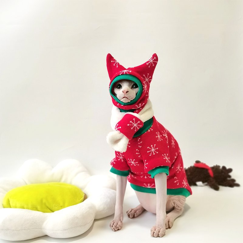 Christmas Knitted Sweater Hat Set Sphynx Cat Clothes