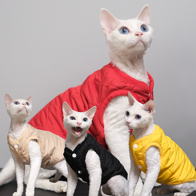 This double layer cotton coat is designed for devon rex and sphynx cat to provide reliable warmth during autumn and winter. Lightweight yet insulated, it offers a simple comfortable fit that is easy to wear and ideal for everyday use.