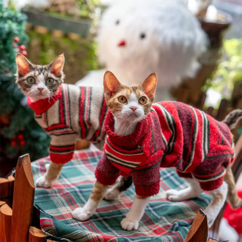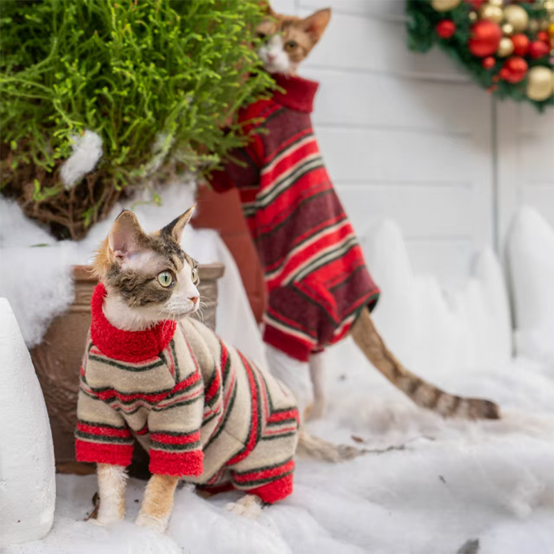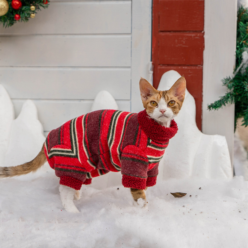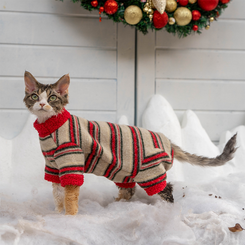 This full coverage onesies is designed for devon rex and sphynx cat with four leg protection and belly coverage for extra warmth. Thick, soft, and comfortable, it helps retain body heat while protecting sensitive skin during colder seasons and daily wear.