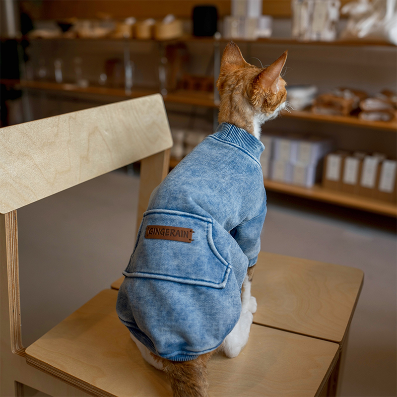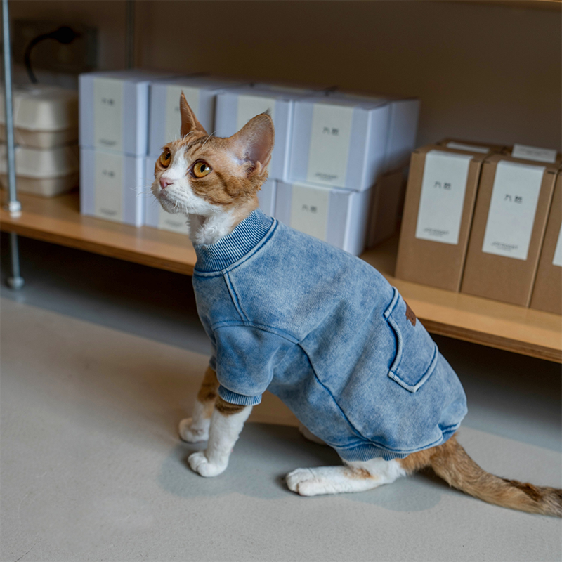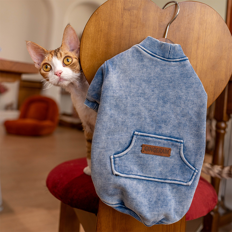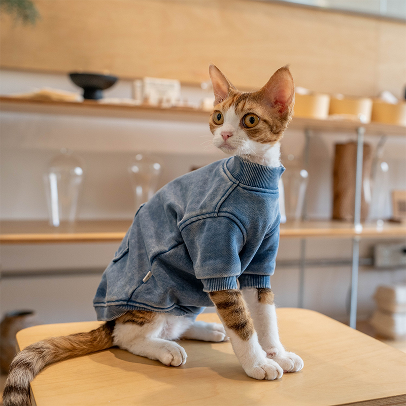 This vintage washed shirts is designed for devon rex and sphynx cat with a heavyweight cotton fabric that offers warmth durability and everyday comfort. Soft yet structured, it protects sensitive skin while delivering a trendy worn in look suitable for outdoor wear and daily use.