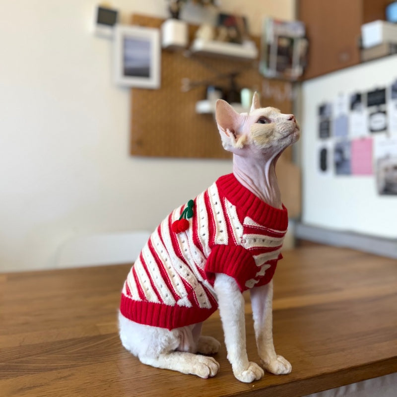 Christmas Cherry Sweater Sphynx Cat Clothes Devon Rex