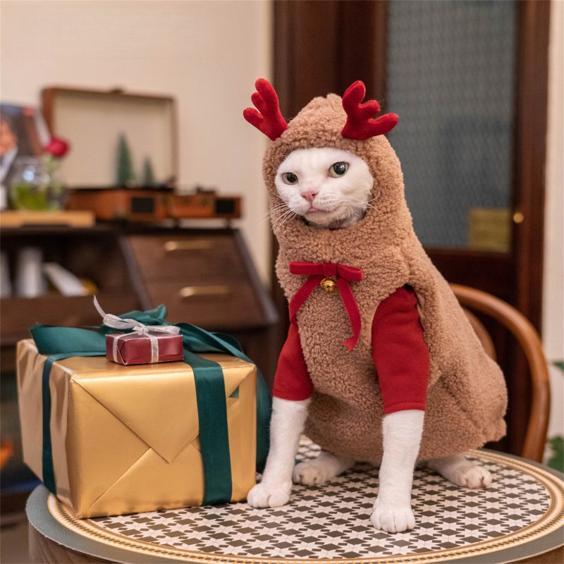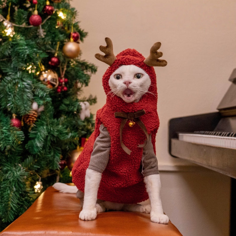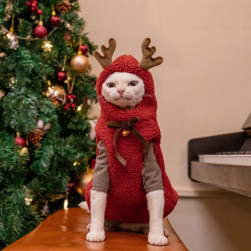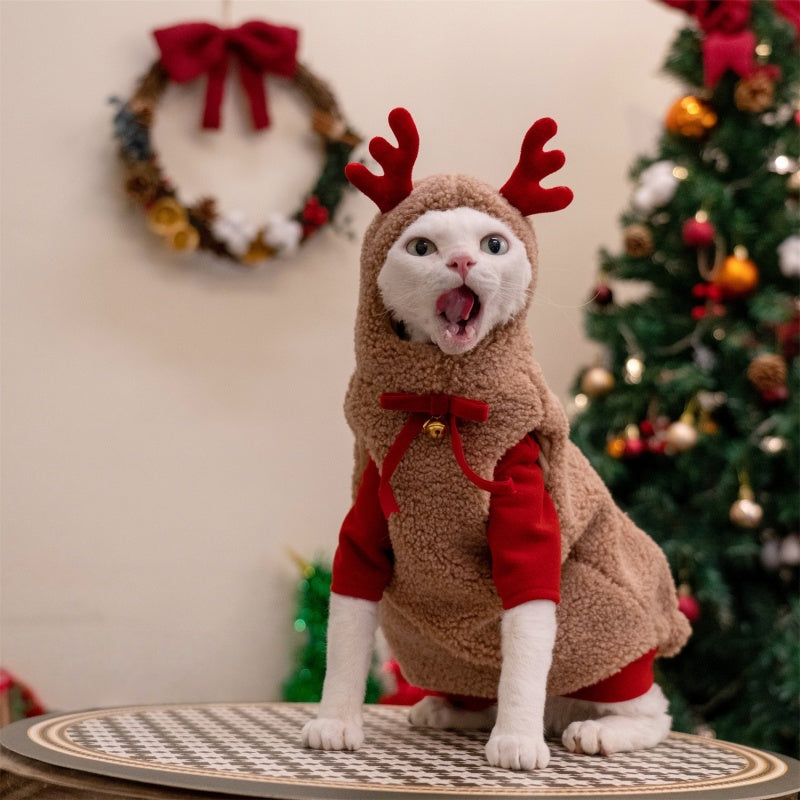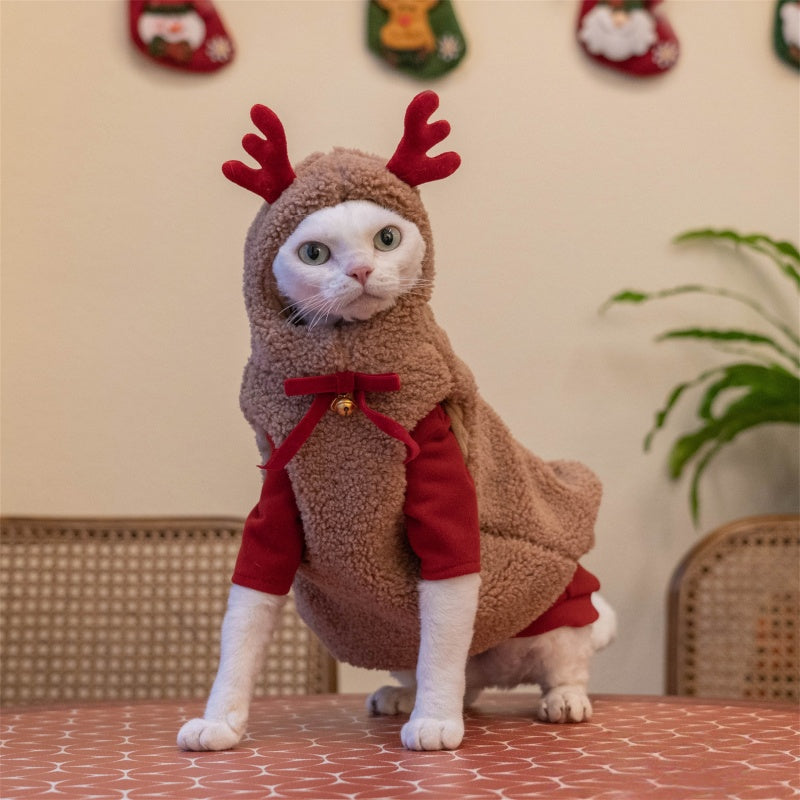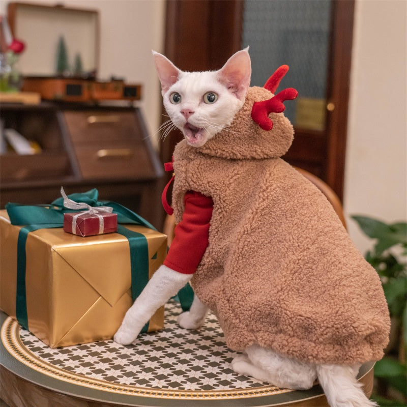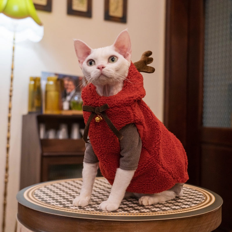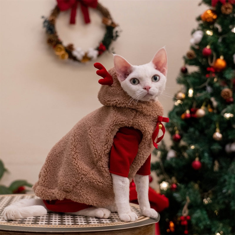 Christmas Fleece Warm Reindeer Outfit Vest for Devon Rex Cat Clothes Sphynx Cat