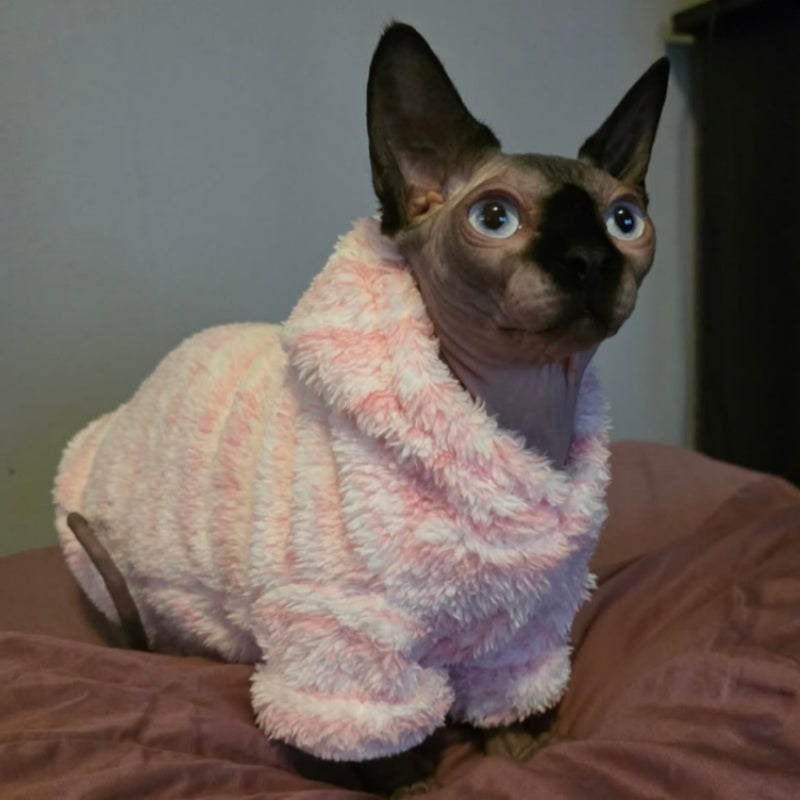 Provide your Sphynx or Devon Rex cat with cozy protection this winter with these soft, comfortable clothes designed specifically for their unique needs. Crafted from gentle, warm materials, these garments help maintain body heat while allowing freedom of movement. Perfect for hairless or lightly coated breeds, this apparel reduces exposure to cold temperatures, supporting your cat’s health and comfort during chilly seasons.