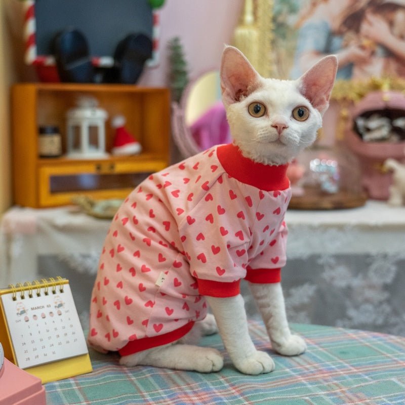 Cotton Lightweight Summer Shirt for Sphynx Cats – Raglan Sleeve Heart Design