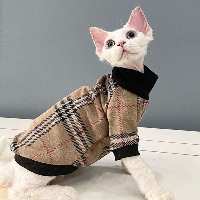 Sphynx Cat Clothes Plaid Turtleneck Pullover Shirts