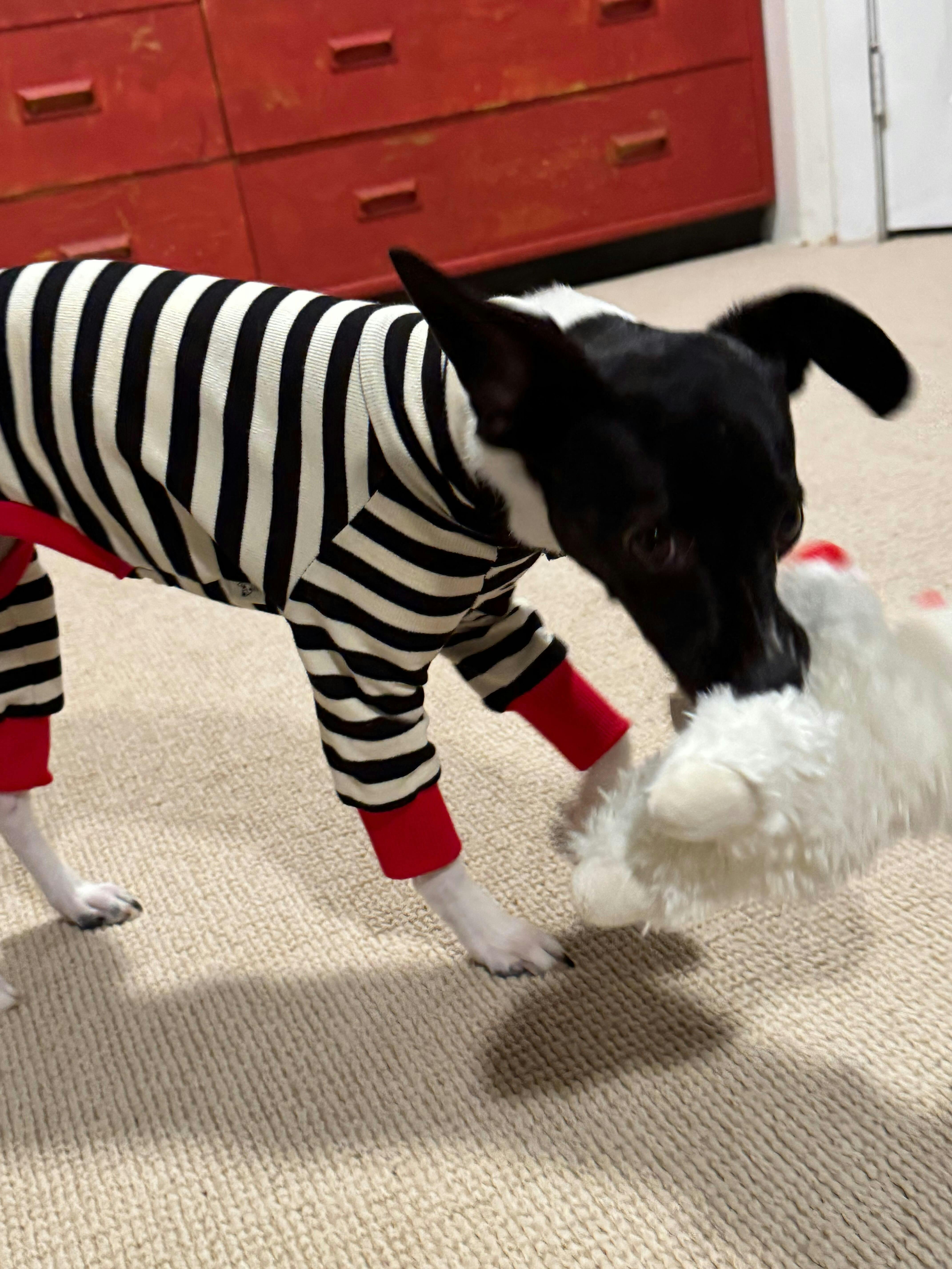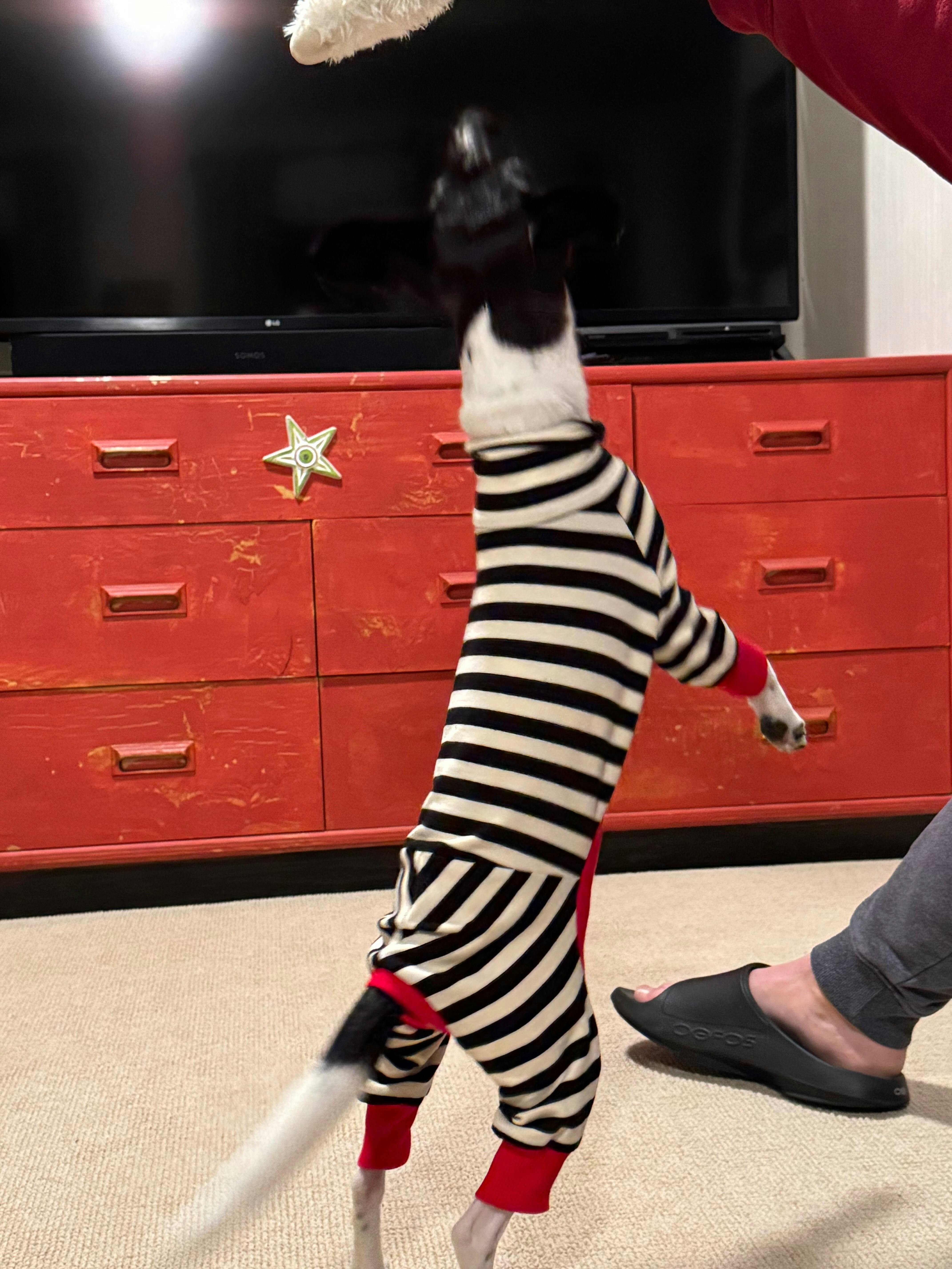 This stylish jumpsuit provides your Italian Greyhound or Whippet with year-round comfort. Crafted from pure cotton, it is soft to the touch and designed to fit their head and body shape. Keep your pup stylish this season.