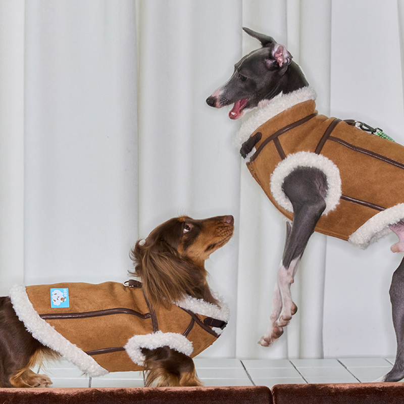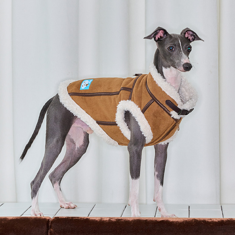 This leather plush vest coats is designed for Italian Greyhounds and Whippets who need warmth and stylish protection during winter. Featuring a soft plush lining and durable outer material, it provides insulation while remaining comfortable and cozy. The vest style allows freedom of movement, making it ideal for walks, casual outings, and everyday winter wear.