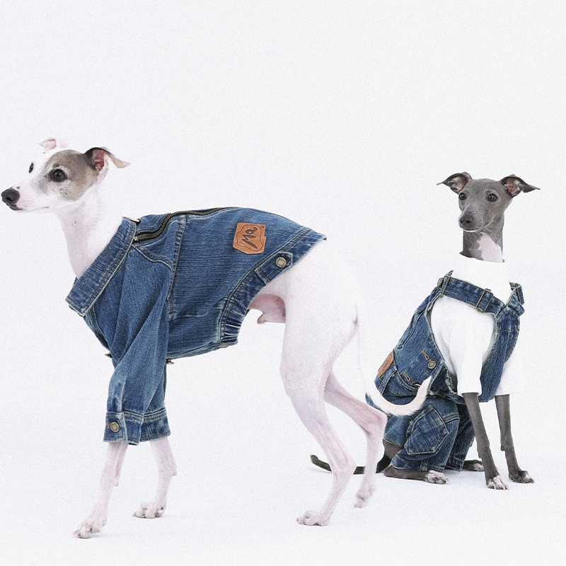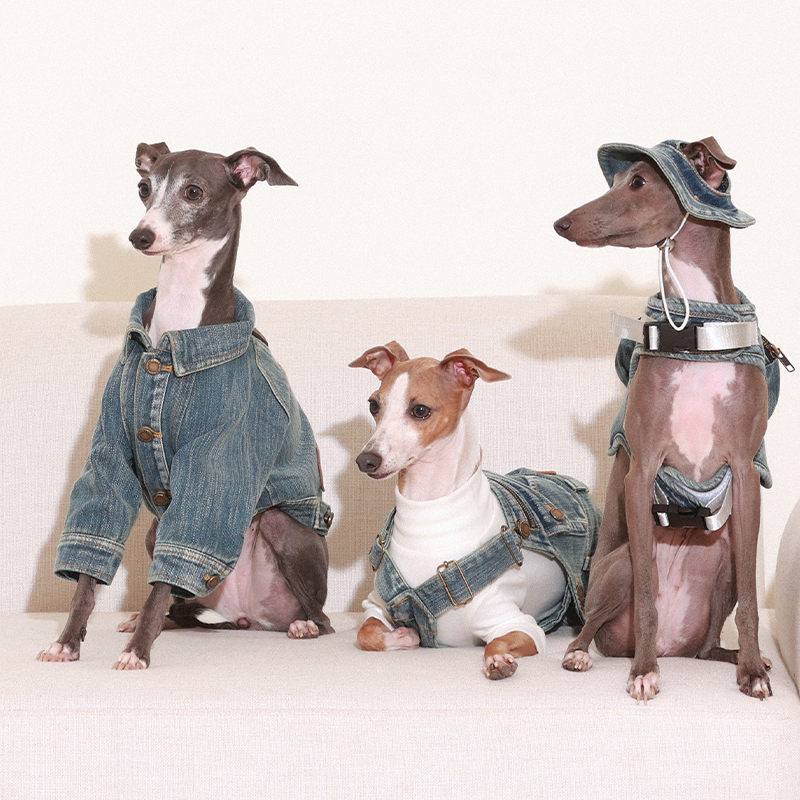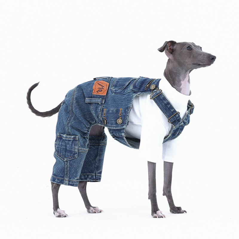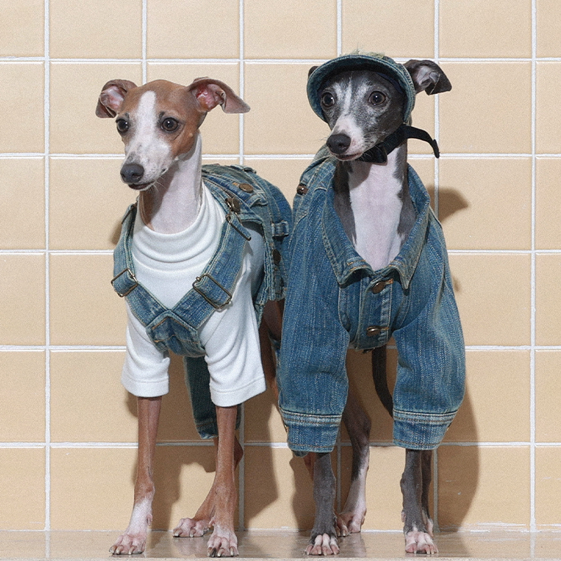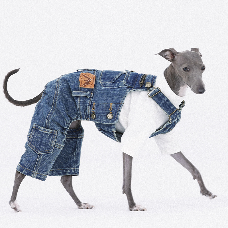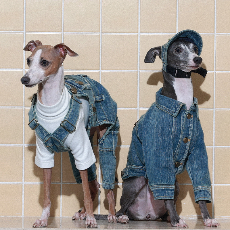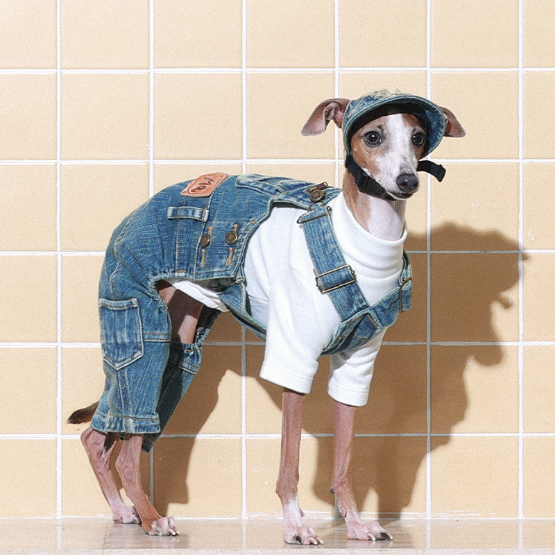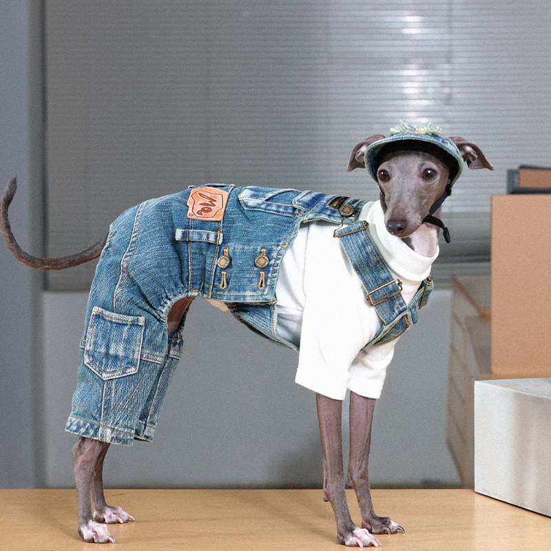 Washed Slub Cotton Denim Onesies Italian Greyhound Whippet Dog Clothes