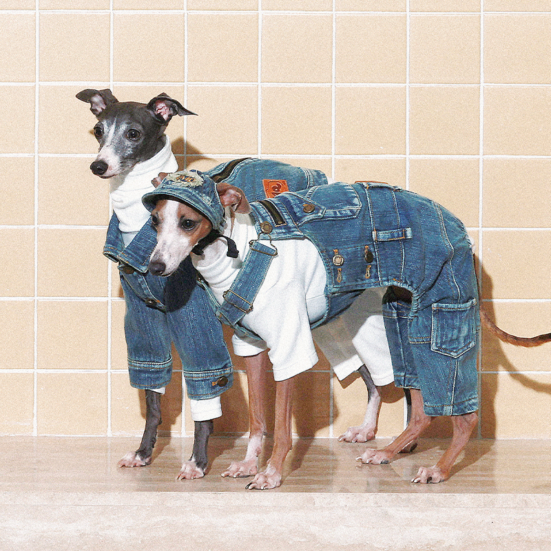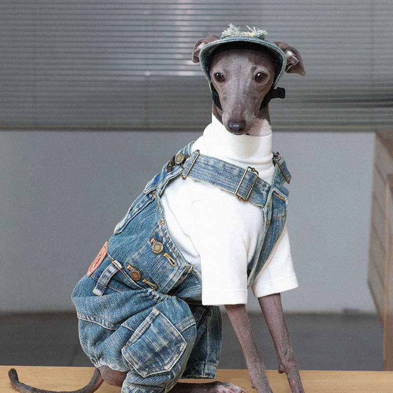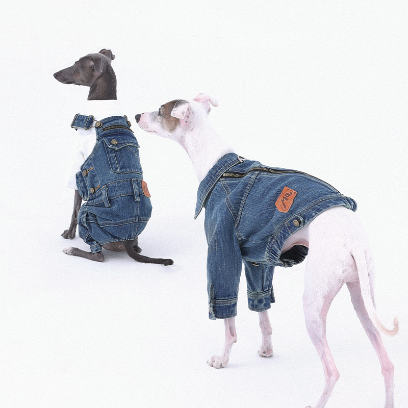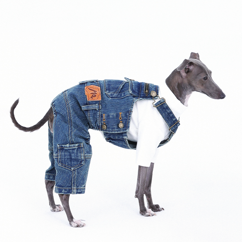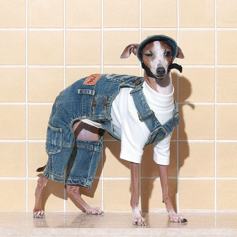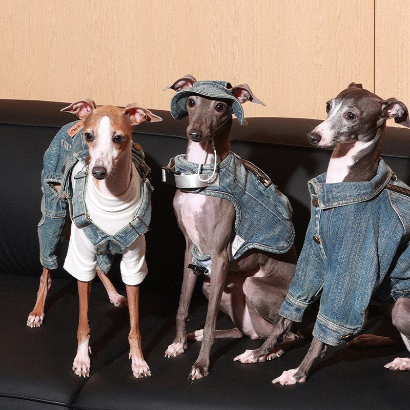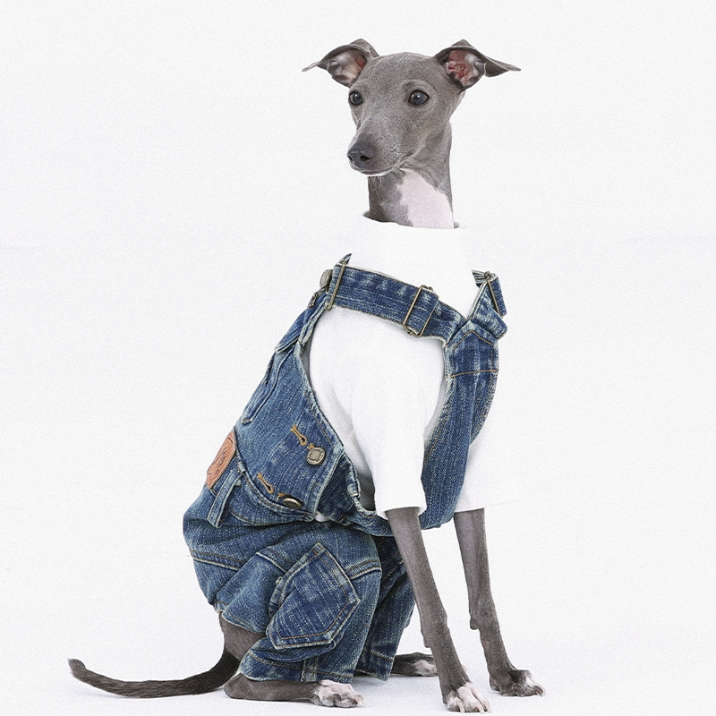 Washed Slub Cotton Denim Onesies Italian Greyhound Whippet Dog Clothes