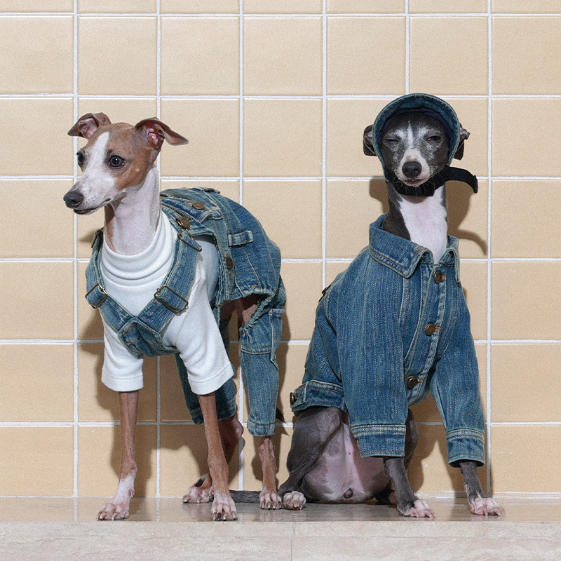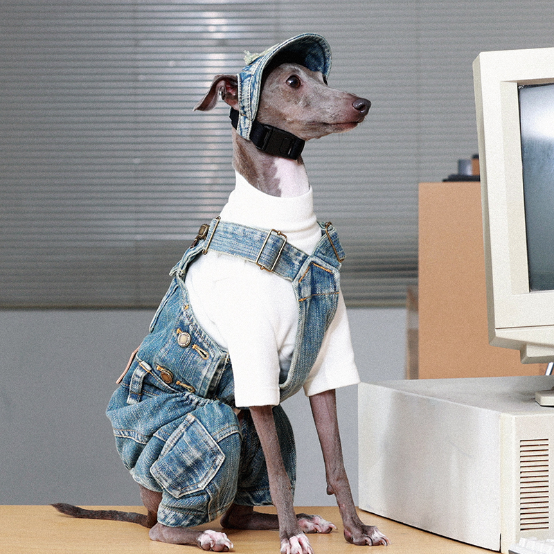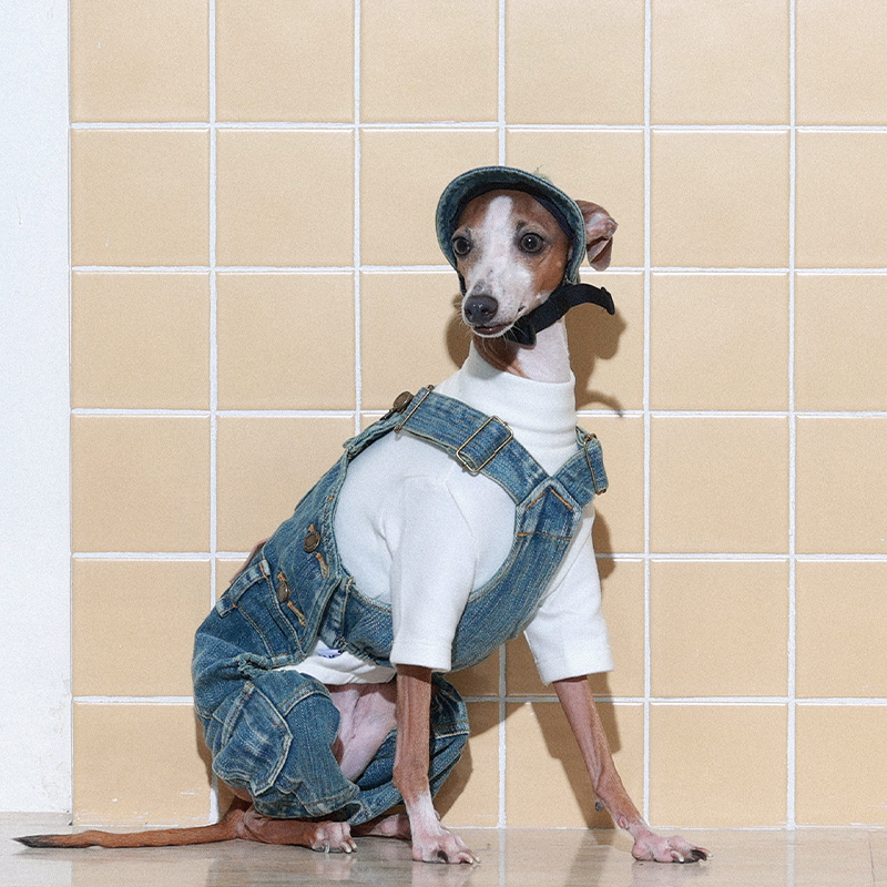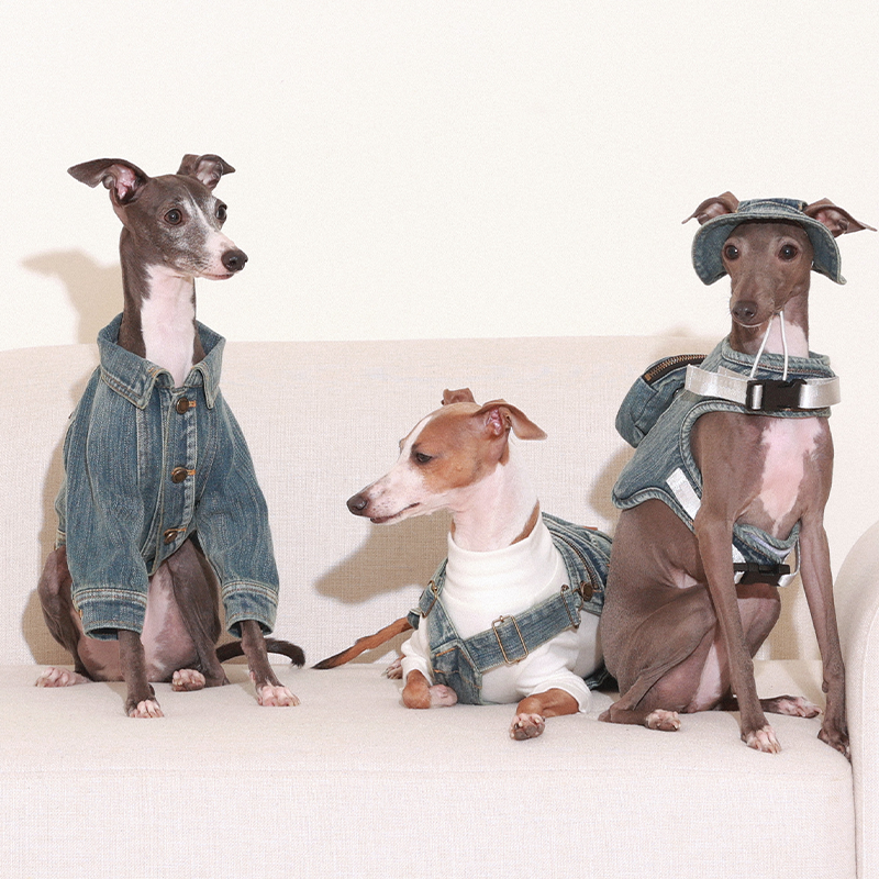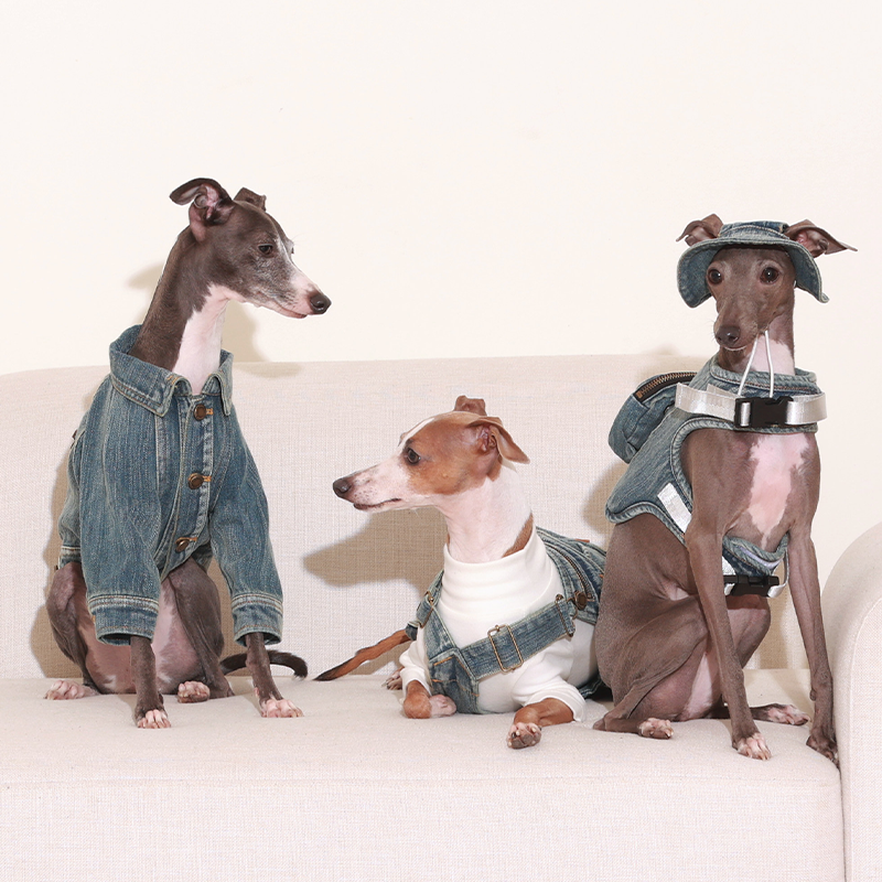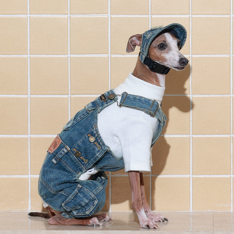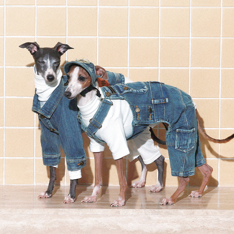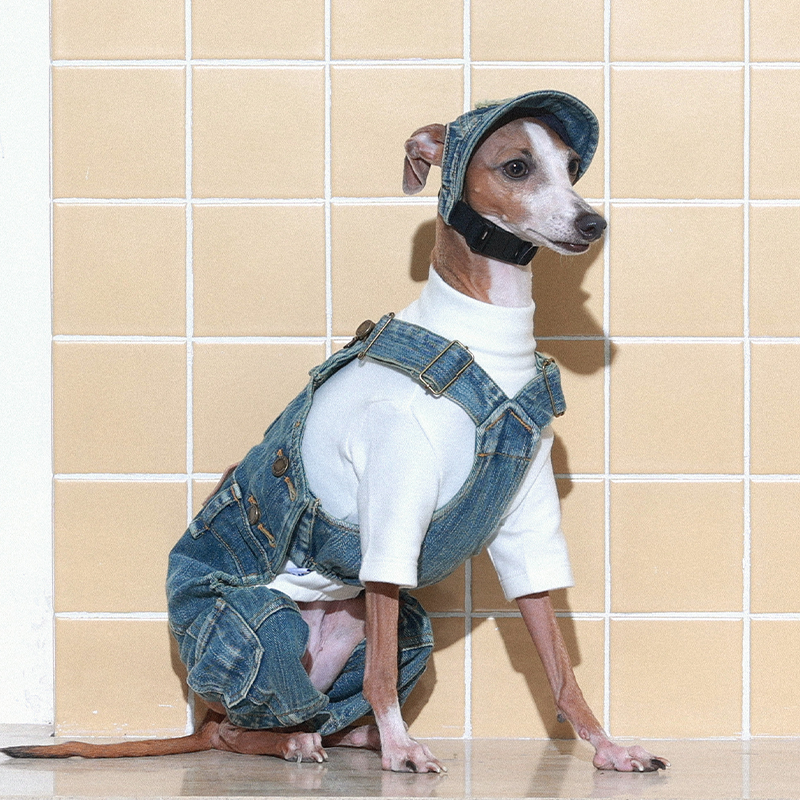 Washed Slub Cotton Denim Onesies Italian Greyhound Whippet Dog Clothes