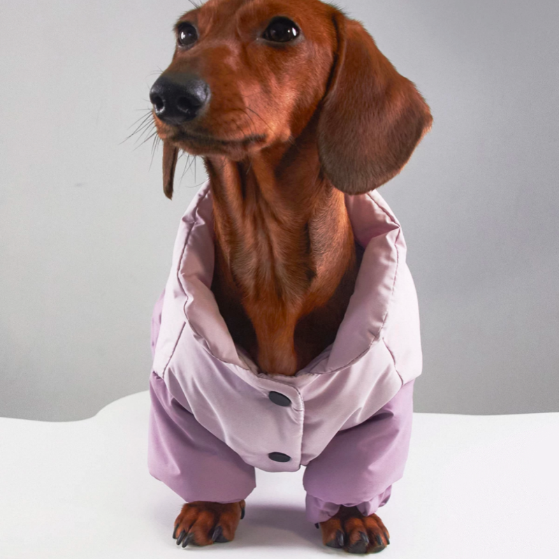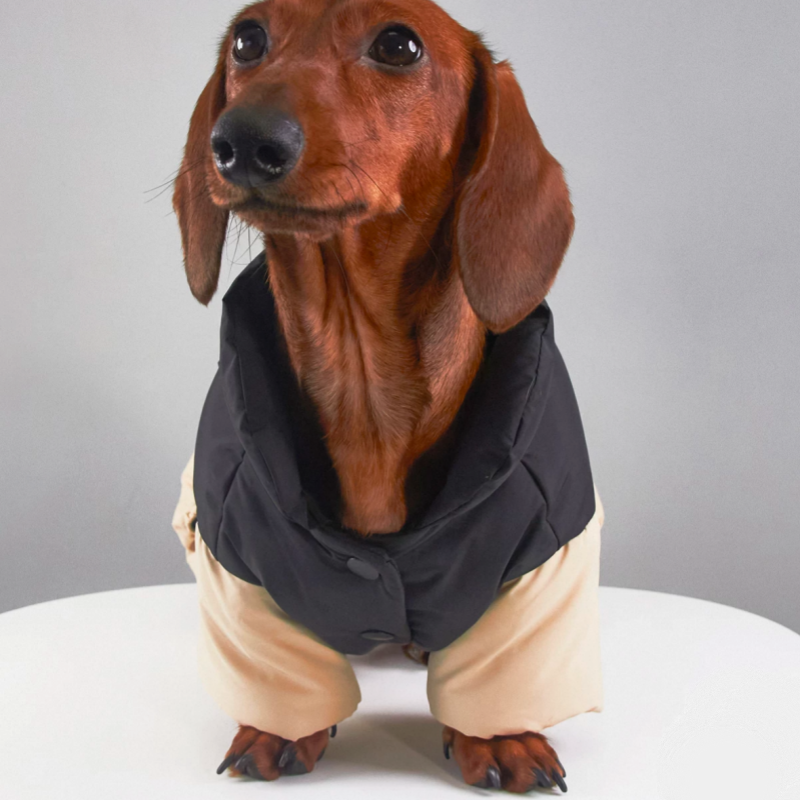 This graphene cotton snowsuits is designed to keep Dachshunds warm and comfortable during cold weather. Featuring windproof and snowproof protection, it helps shield your dog from harsh outdoor conditions. The soft cotton padding provides gentle insulation, while the four legged design offers full body coverage for daily winter walks and outdoor activities.