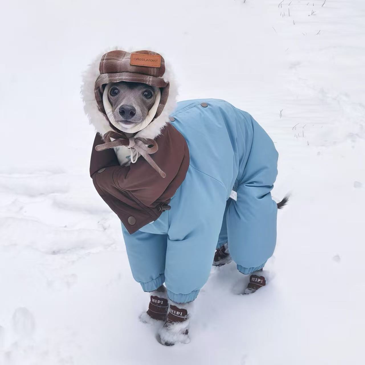 Handmade Reversible Waterproof Down Snowsuit Four-Leg Outfit for Italian Greyhound