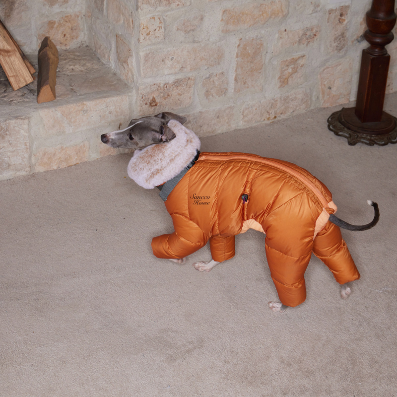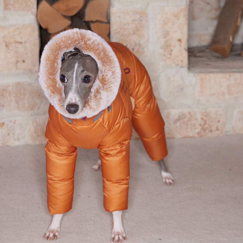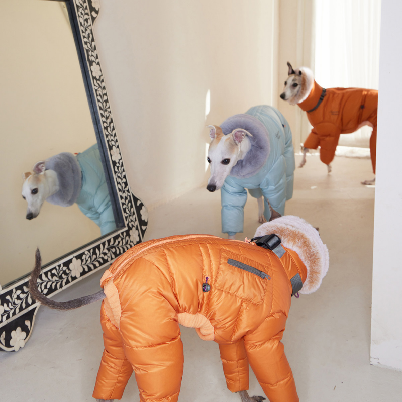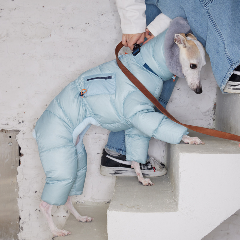 Keep your Italian Greyhound cozy and protected with this lightweight winter down snowsuits. Filled with soft white duck down for superior warmth, it locks in heat while remaining water-resistant to keep your dog dry in light rain or snow. Perfect for chilly days, this jacket ensures comfort and warmth without weighing your dog down.