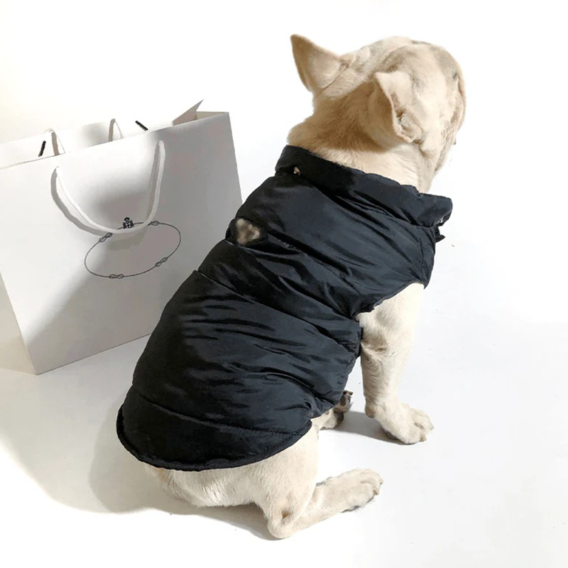 Keep your furry friend warm and stylish with our Dog Jacket Bulldog Clothes. Designed for comfort and warmth, this padded vest is perfect for cold seasons. Comes with a leash sleeve for added convenience. Your dog will love snuggling up in this fashionable and cozy Pra*da jacket.