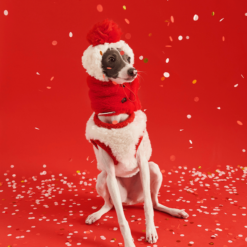 Get your furry friend ready for the New Year with our stylish red fleece vest and matching collar and hat set! Perfect for small dogs like Italian Greyhounds, this jacket is made with thick, cozy material to keep them warm during the winter months. Celebrate the Year of the Dragon in style with this festive outfit.
