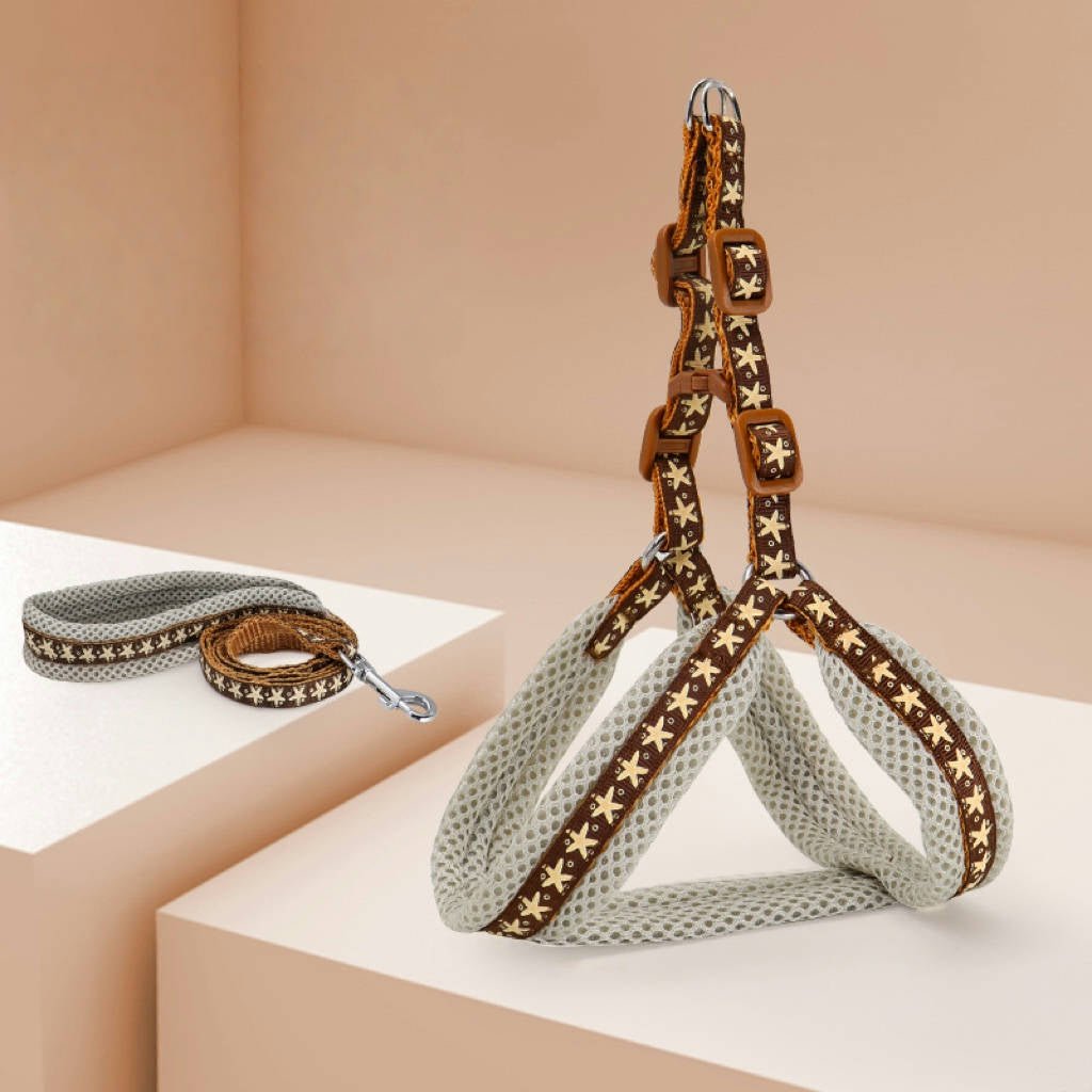 Take your furry friend for a walk in style and comfort with our Small Dog Harness with Leash Vest-Style Set. This set comes with a vest-style harness and matching leash, perfect for small dogs like Pomeranians and Corgis. Keep your pet safe and secure while adding a touch of fashion to your walks.