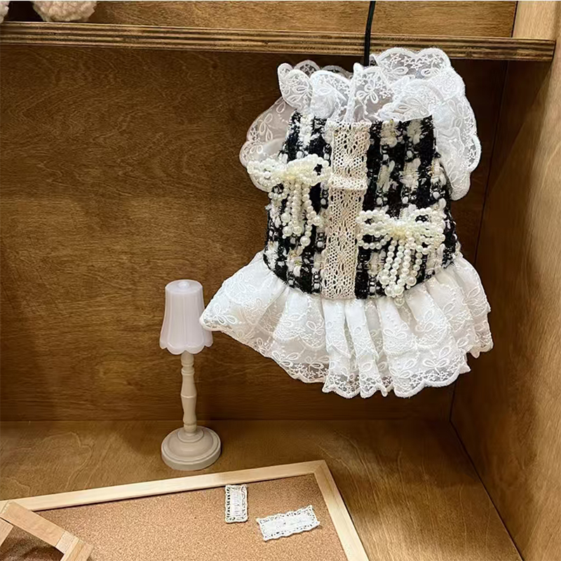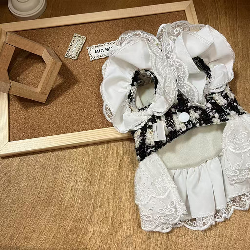 This autumn and winter couture style dresses is designed for small medium dogs who enjoy refined fashion and seasonal warmth. Featuring a tailored silhouette inspired by classic luxury aesthetics, it offers both elegance and comfort. The structured outer layer provides light insulation while allowing easy movement, making it ideal for special occasions outings and stylish everyday wear.