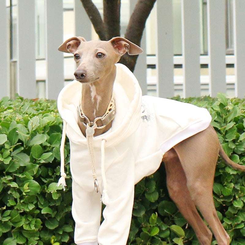 Keep your Italian Greyhound or Whippet cozy with this premium cotton drawstring hoodie. Crafted from soft, breathable cotton fabric, this garment provides gentle warmth without overheating delicate breeds. The adjustable drawstring ensures a secure, customizable fit for your petite companion, while the relaxed silhouette allows unrestricted movement. Ideal for cooler weather walks or lounging at home, this hoodie combines comfort with practical functionality. Perfect for small dog owners seeking quality apparel that prioritizes their pet's wellbeing and style.