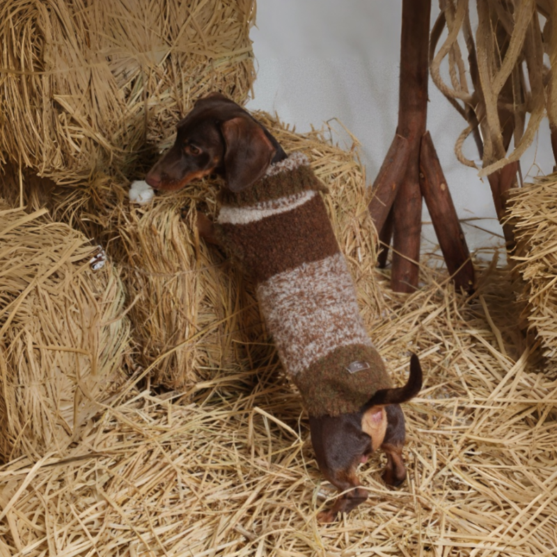 Keep your dachshund cozy through chilly months with this expertly crafted knit sweater vest. The fuzzy knit construction provides superior insulation while maintaining breathability, ideal for sensitive skin. The tailored fit accommodates your dog's elongated frame, ensuring unrestricted movement during walks and play. Reinforced seams and quality materials withstand regular wear and washing. Perfect for layering or standalone wear, this winter essential combines functionality with understated style for year-round comfort.