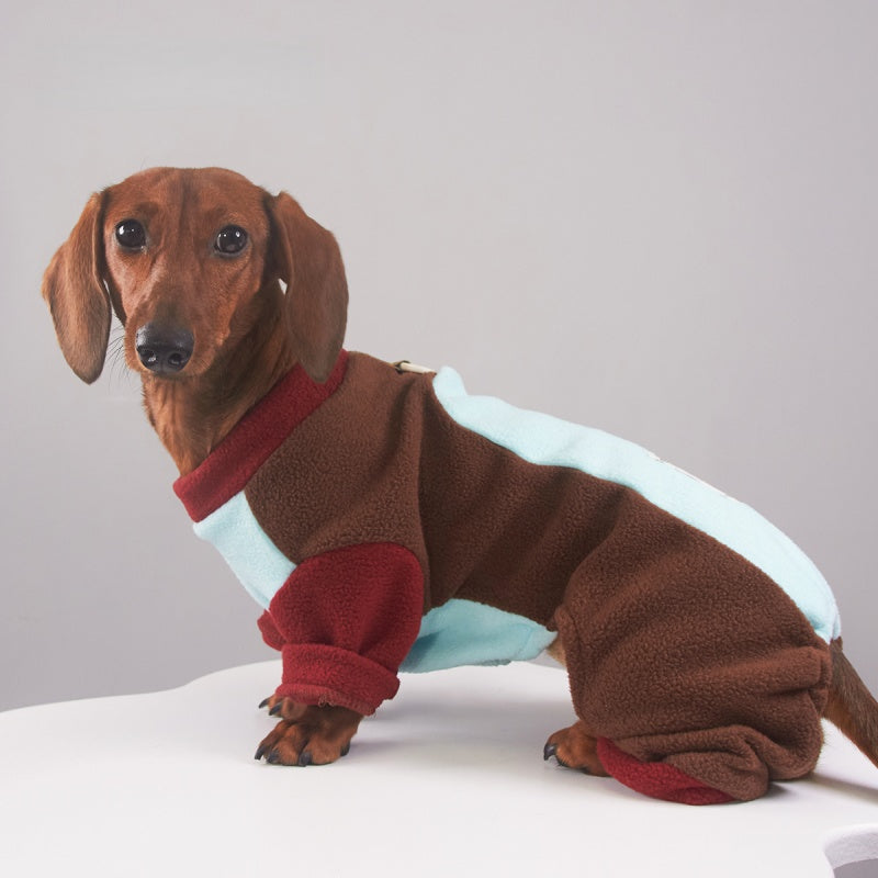 Weenie Dog Clothes Warm Fleece LeashHook Dachshund Dog Winter Four Leg Outfit