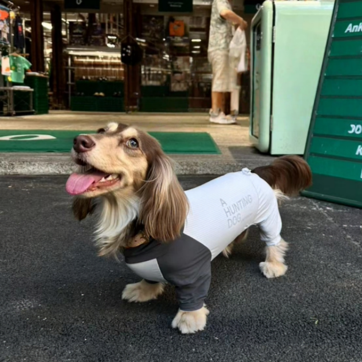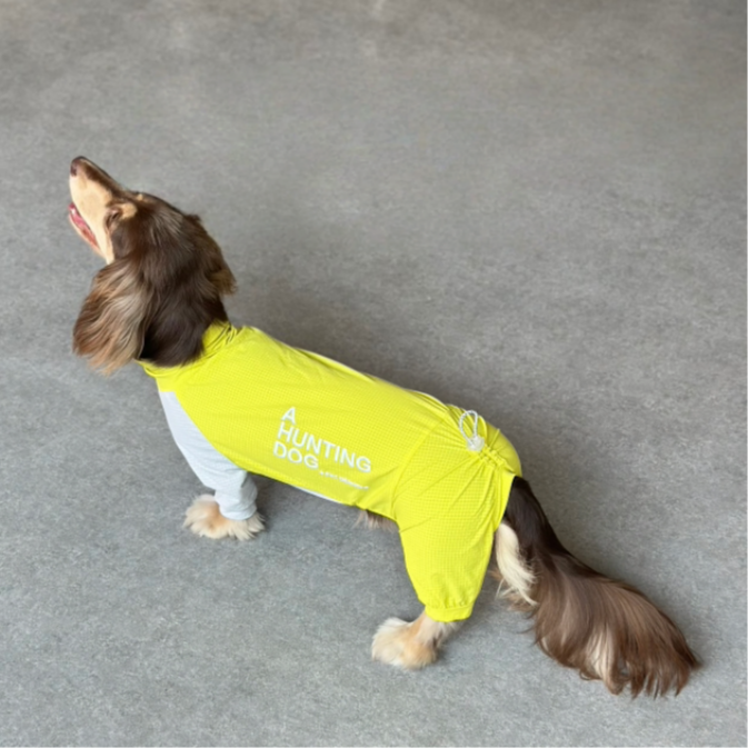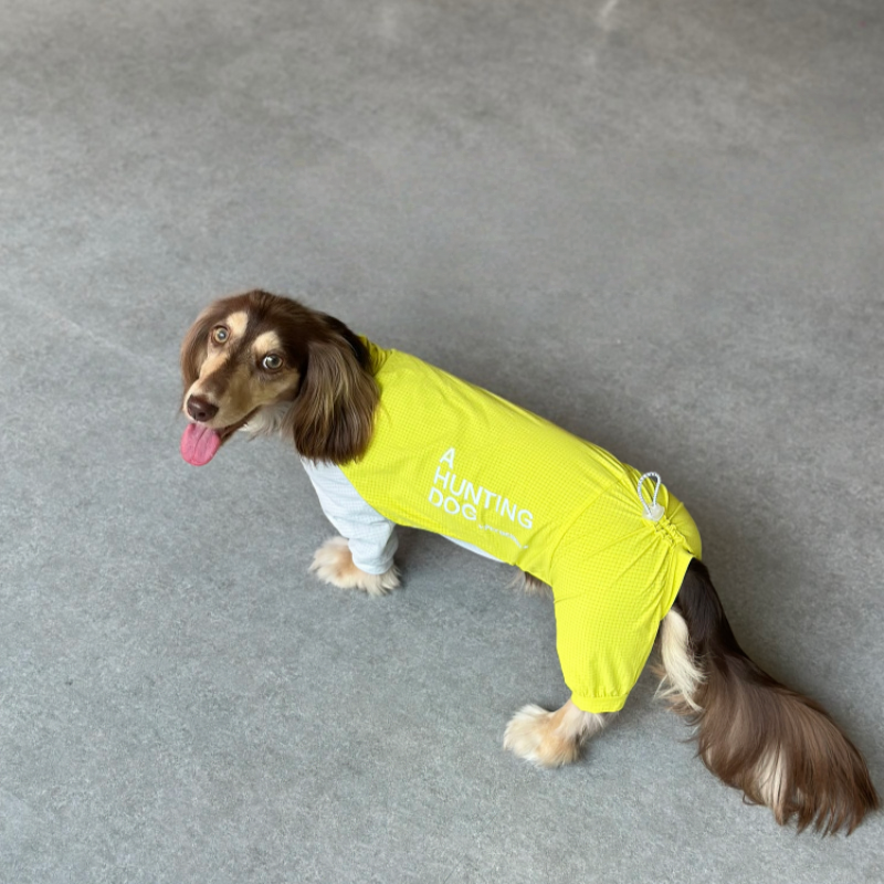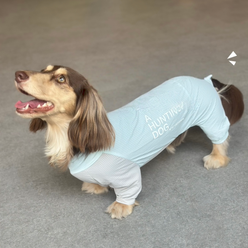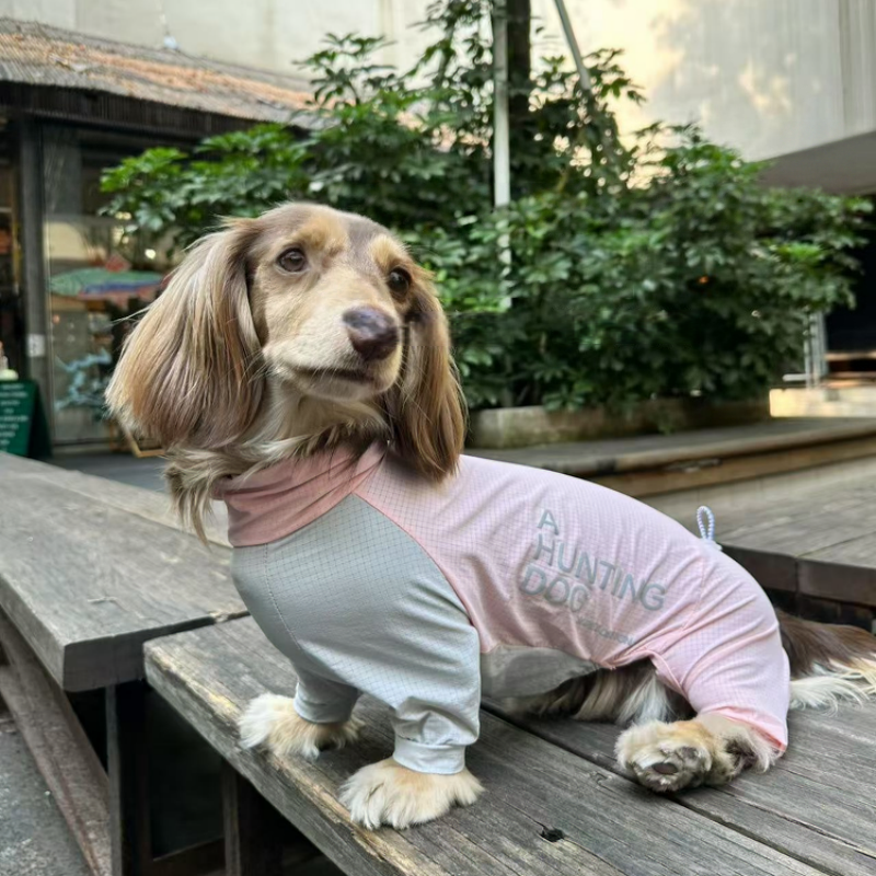 Keep your dachshund comfortable during warm months with this specialized cooling outfit. Engineered with QuickDry fabric technology, this four-leg garment provides superior moisture management while maintaining lightweight breathability. The design accommodates your dachshund's distinctive elongated frame, ensuring proper fit and unrestricted movement. Ideal for outdoor activities, walks, and lounging indoors during summer heat. The advanced cooling properties help regulate body temperature, reducing heat stress while the quick-drying material prevents moisture buildup. Perfect for active dogs who need protection from excessive heat without added bulk or discomfort.
