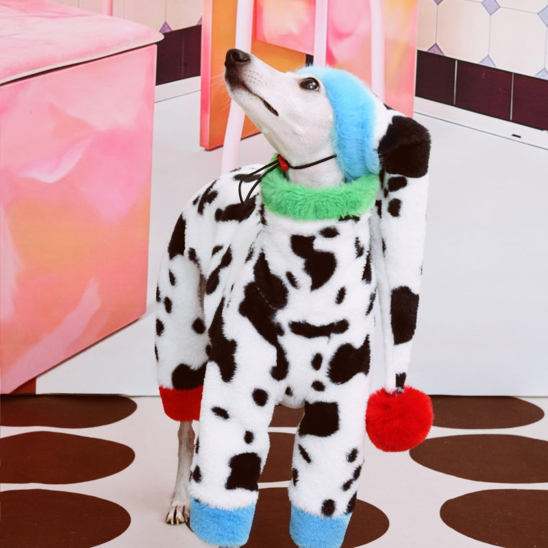 Cow Print Fleece Four Leg Winter Outfit for Italian Greyhound Whippet