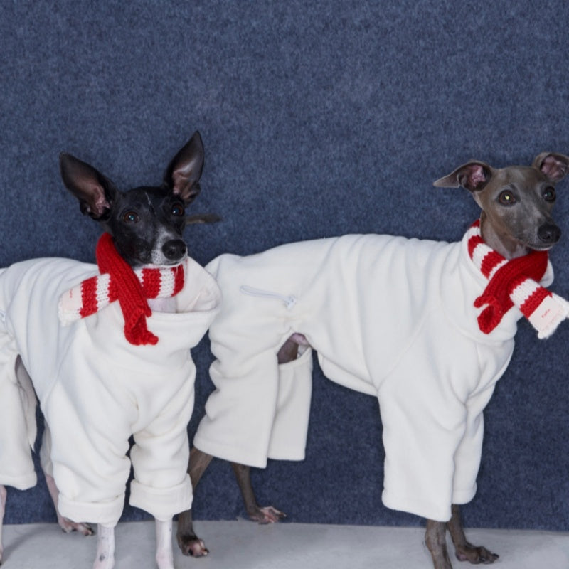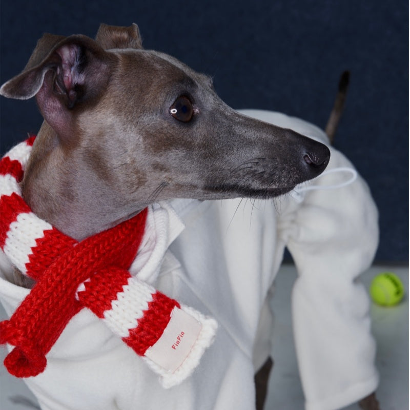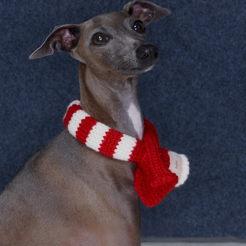 Elevate your Italian Greyhound or Whippet's seasonal style with this festive striped color block scarf. Thoughtfully designed for small dog breeds, the lightweight construction ensures comfort without restricting movement or breathing. The vibrant holiday-inspired color blocking adds visual interest while the soft fabric drapes elegantly around your pet's neck. Perfect for Christmas and New Year celebrations, this accessory combines practicality with contemporary design. Ideal for photo opportunities, special occasions, or everyday wear during the festive season. A sophisticated choice for discerning pet owners seeking quality and style.