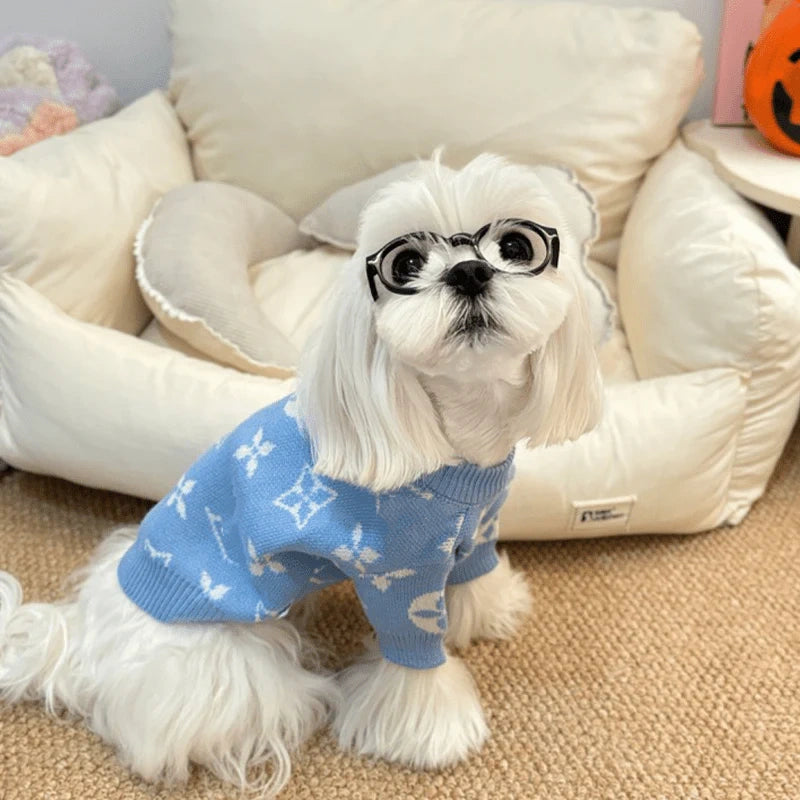 Dog Sweater Knit Wear Cat Sweater Designer Clothes Blue