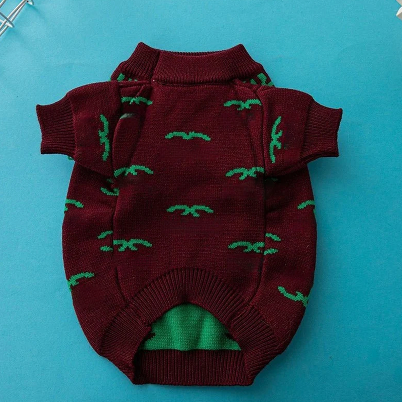 Luxury Designer Style Knitwear Sweater Dog Clothes Dark Brown Green