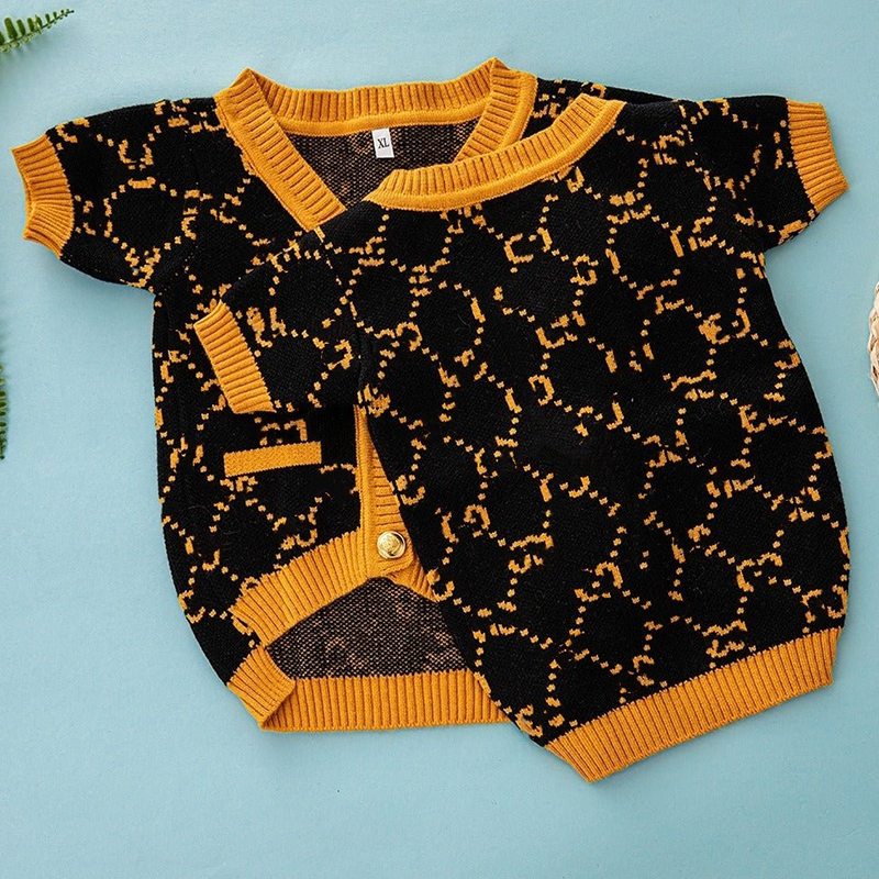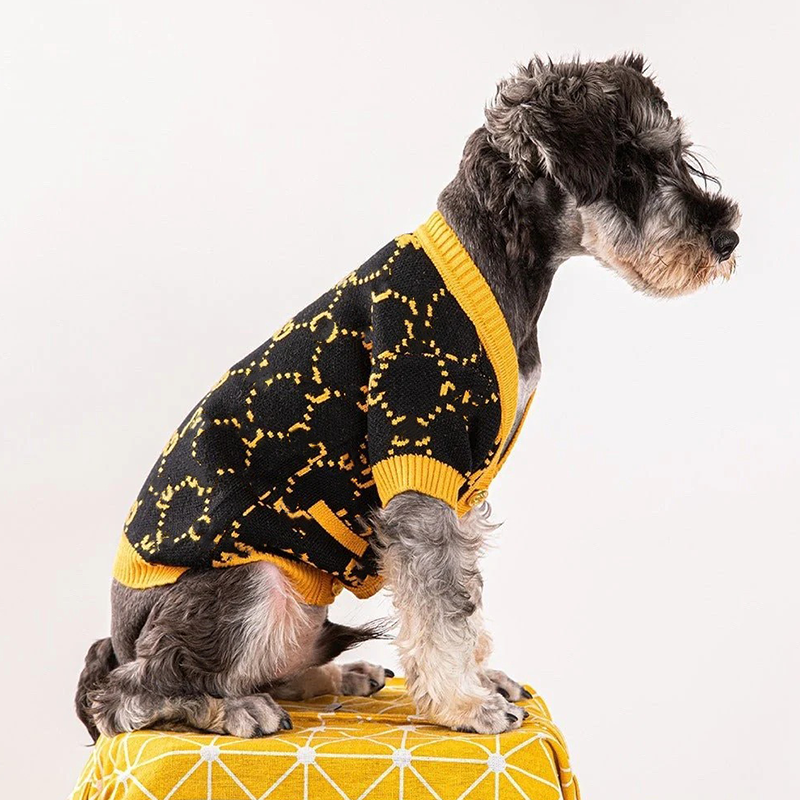 V-neck Button Knitting Sweater Dog Clothes Black Yellow