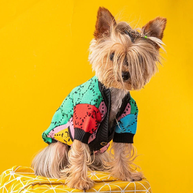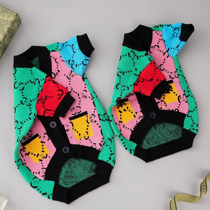 V-neck Button Knitting Sweater Dog Clothes G Colorful