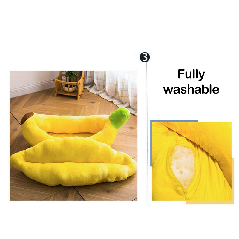This banana-shaped dog bed is designed to provide a cozy and comfortable resting space for your dog. Made from soft, plush materials, it offers gentle support while keeping your dog warm and snug. The removable design allows for easy cleaning and maintenance, making it practical for daily use. The bed comes with a small blanket and a matching pillow, adding extra comfort and warmth for your dog. Its playful banana shape adds a cute and fun touch to your home while providing a secure and inviting spot for your dog to relax, sleep, or lounge.