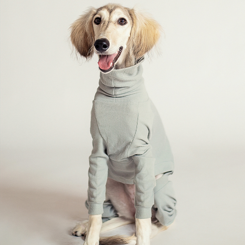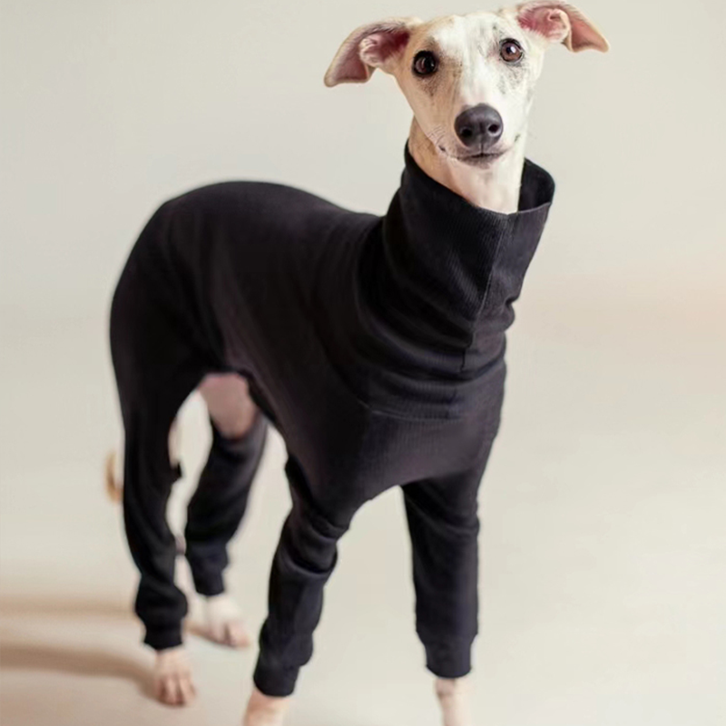 Designed specifically for slender breeds like Greyhounds and Whippets, this cotton warm turtleneck undershirt offers four-leg coverage for optimal warmth. The soft, breathable fabric ensures comfort without restricting movement, while the turtleneck design provides added protection against cold weather. Its tailored fit supports muscle maintenance and helps shield sensitive skin, making it an essential layering piece for cooler seasons.