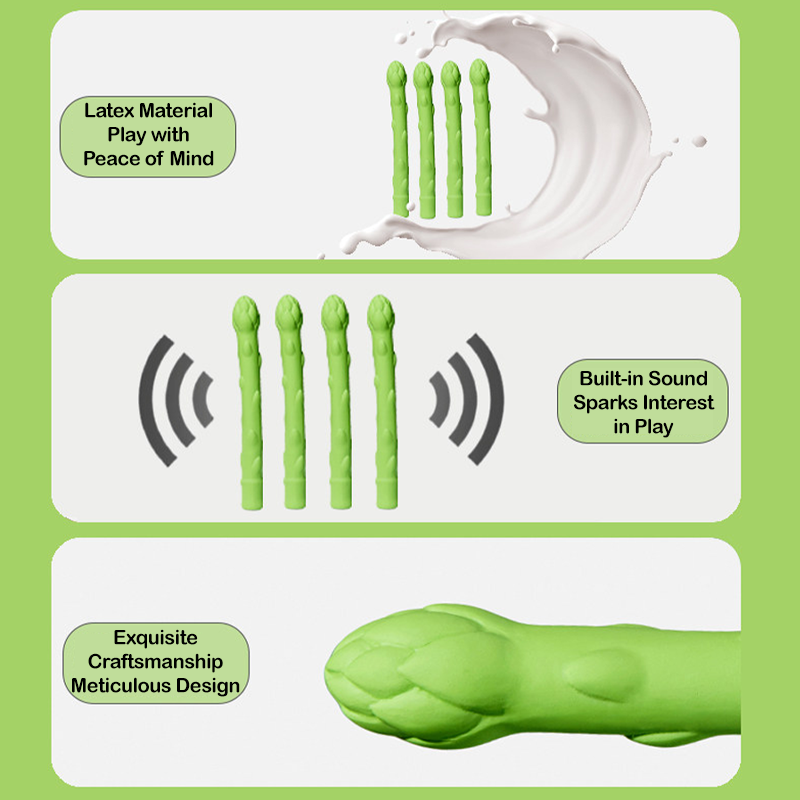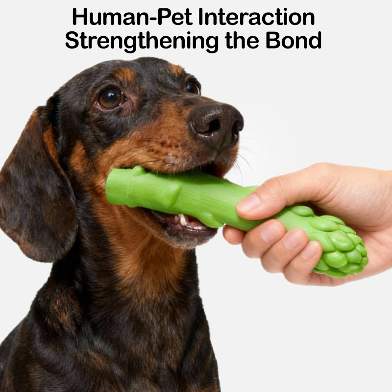 This asparagus-shaped dog toy is made from durable latex material and designed to support chewing, dental care, and active play. The built-in squeaker produces engaging sounds that capture your dog’s attention and encourage longer play sessions. Its textured surface provides a satisfying chewing experience that helps clean teeth and massage gums during use. Lightweight and easy to grip, it is suitable for tossing, chewing, and daily interactive play. This fun vegetable-inspired toy helps release energy, reduce boredom, and support healthy chewing habits.