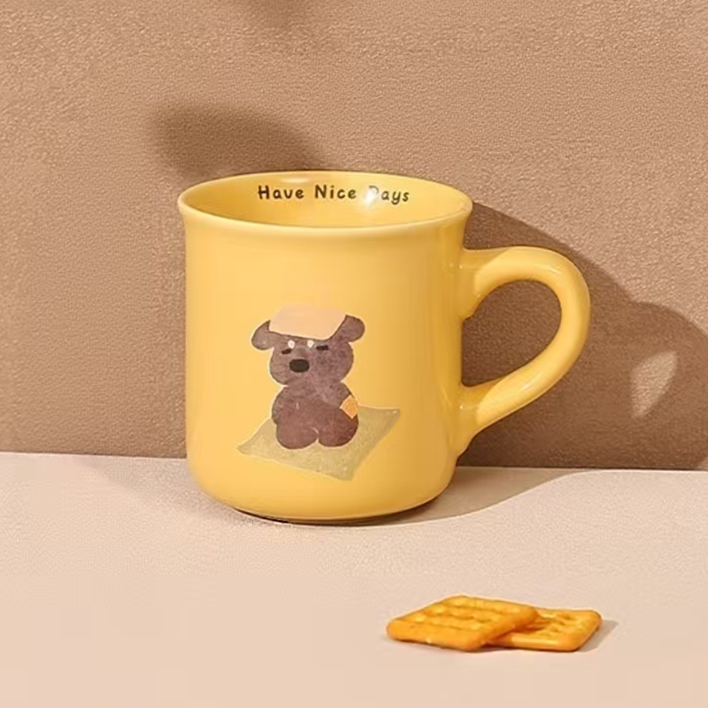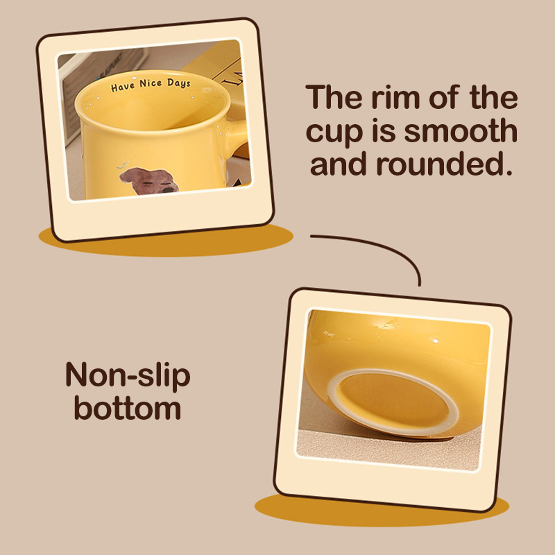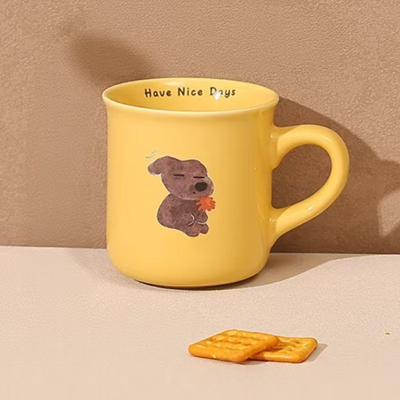 This cute dog ceramic mug features an adorable puppy-inspired design that brings warmth and charm to your daily drinking routine. Made from high-quality ceramic, it offers a smooth finish and a comfortable grip for everyday use. Suitable for both hot and cold beverages, it is perfect for coffee, tea, milk, or water at home or in the office. The playful design also makes it a decorative piece for your desk or kitchen, adding a touch of fun and personality to every sip.