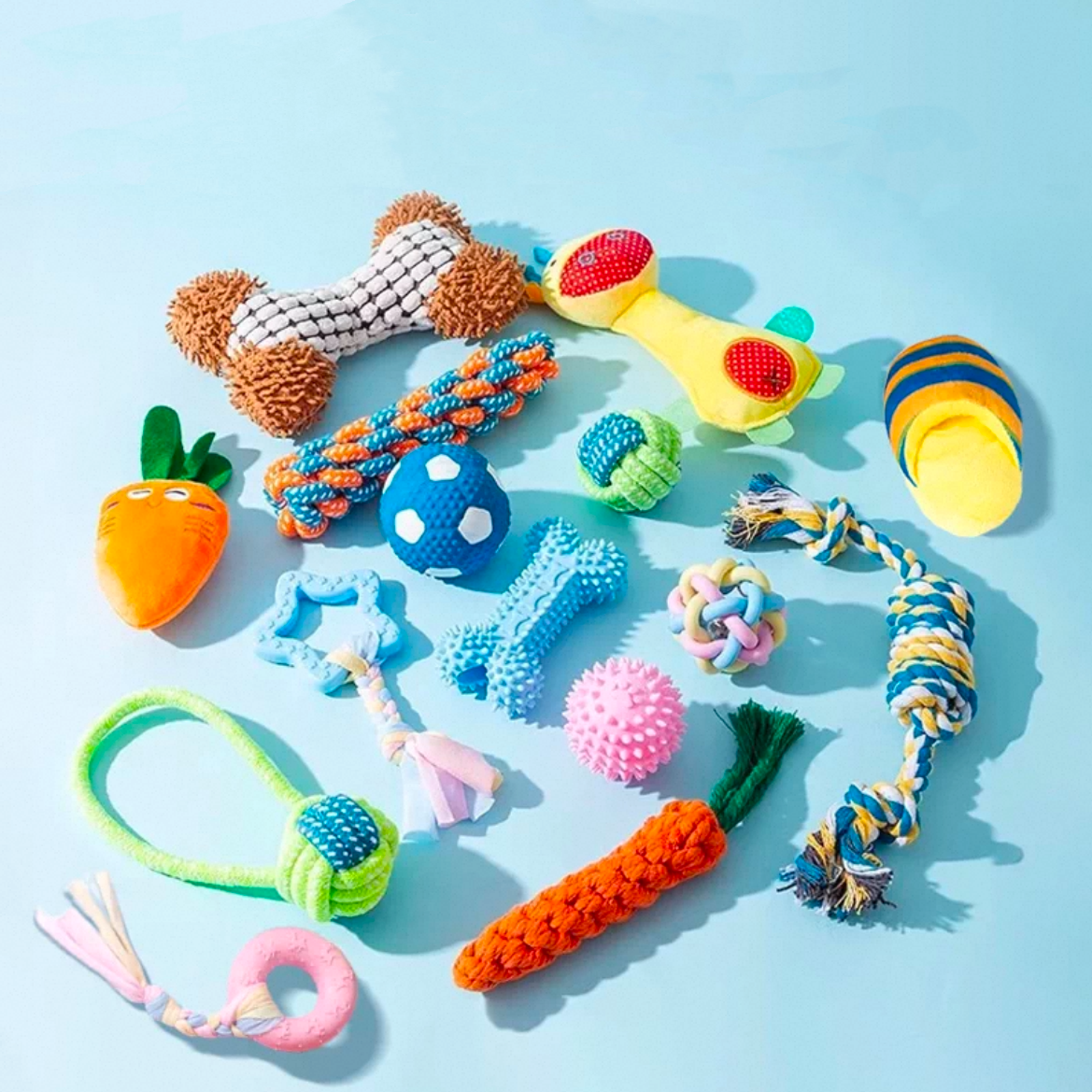 This dog toy series is designed to support chewing, interactive play, and daily enrichment. Made from durable, bite-resistant materials, each toy is built to withstand regular chewing while helping satisfy natural chewing instincts. The built-in squeaker adds engaging sound stimulation, encouraging dogs to stay active and entertained during playtime. Suitable for tossing, biting, and solo play, these toys help relieve boredom and promote healthy activity. Ideal for everyday use, this toy series provides fun and stimulation while supporting your dog’s physical and mental well-being.