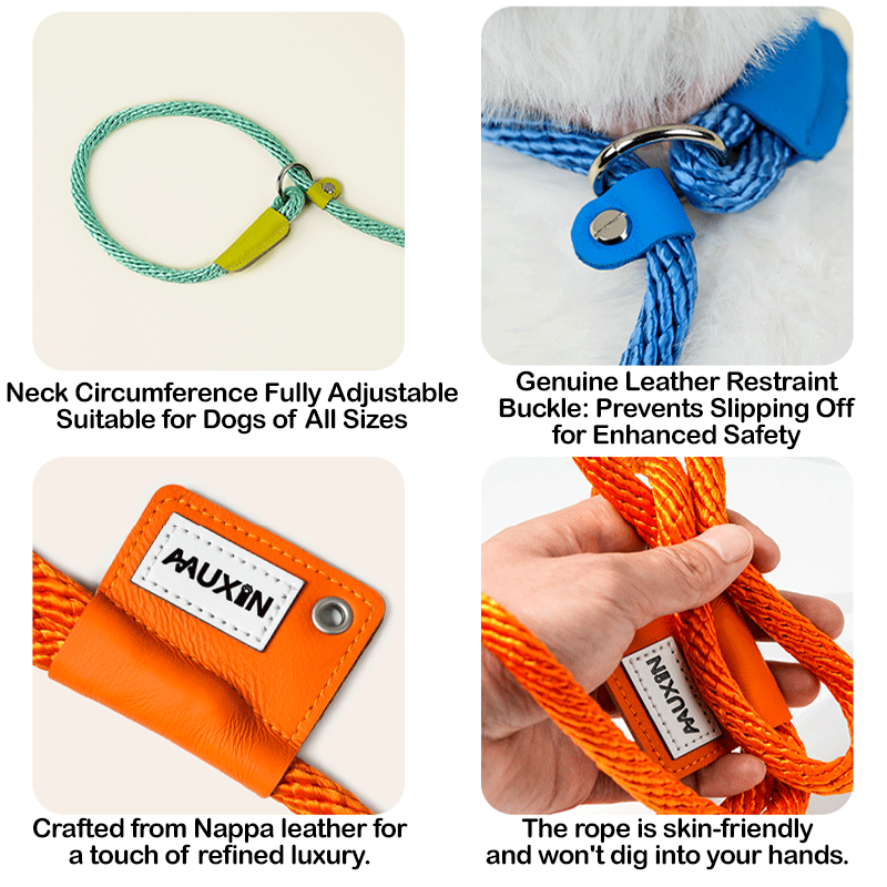This dog slip lead training leash is designed for better control and safe handling during outdoor walks and training sessions. The integrated slip design combines collar and leash in one, allowing quick use and improved control without extra accessories. Made from durable, wear-resistant rope material, it provides reliable strength to help manage pulling and sudden bursts of force, making it suitable for active dogs. Lightweight yet sturdy, it offers a comfortable grip and smooth handling, making it ideal for daily walks, obedience training, and outdoor activities.