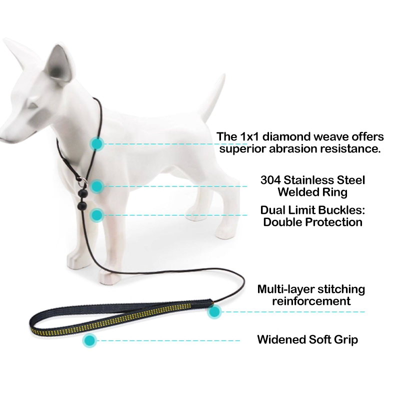 This dog slip lead training leash is designed for effective control during outdoor walks and training sessions. The integrated slip design combines collar and leash in one, allowing quick use without additional hardware. Made from durable, wear-resistant rope material, it provides reliable strength for daily use while helping manage pulling and sudden movements. Lightweight and easy to handle, it offers a secure grip and smooth control, making it suitable for obedience training, daily walks, and outdoor activities with your dog.