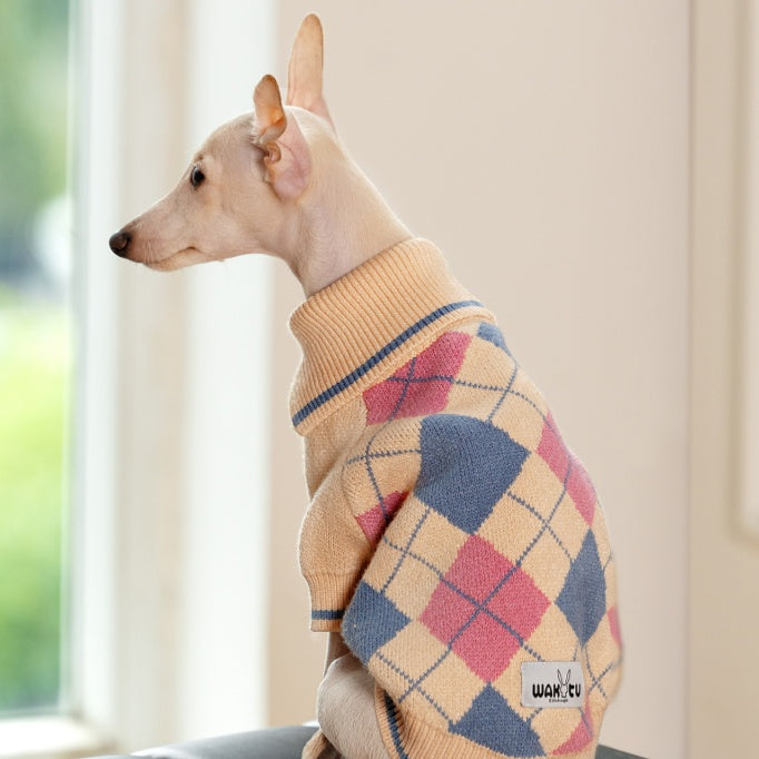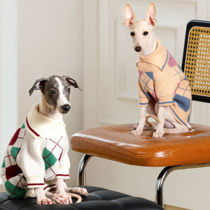 Plaid Sweater Dog Winter Clothes Warm Comfortable for Greyhound Whippet Clothes